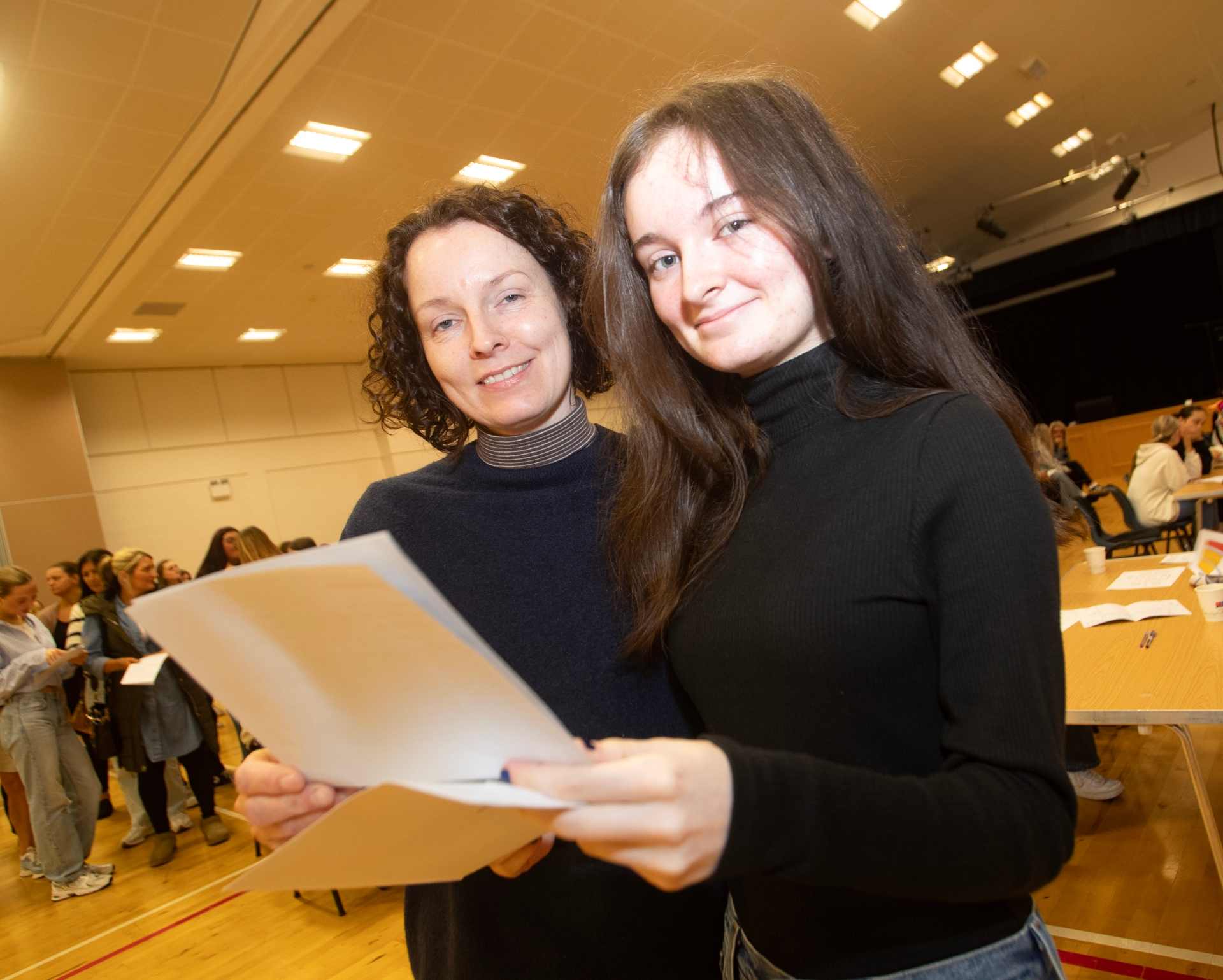 Rori Fitzpatrick and mum Colleen check GCSE results at St. Mary's College.