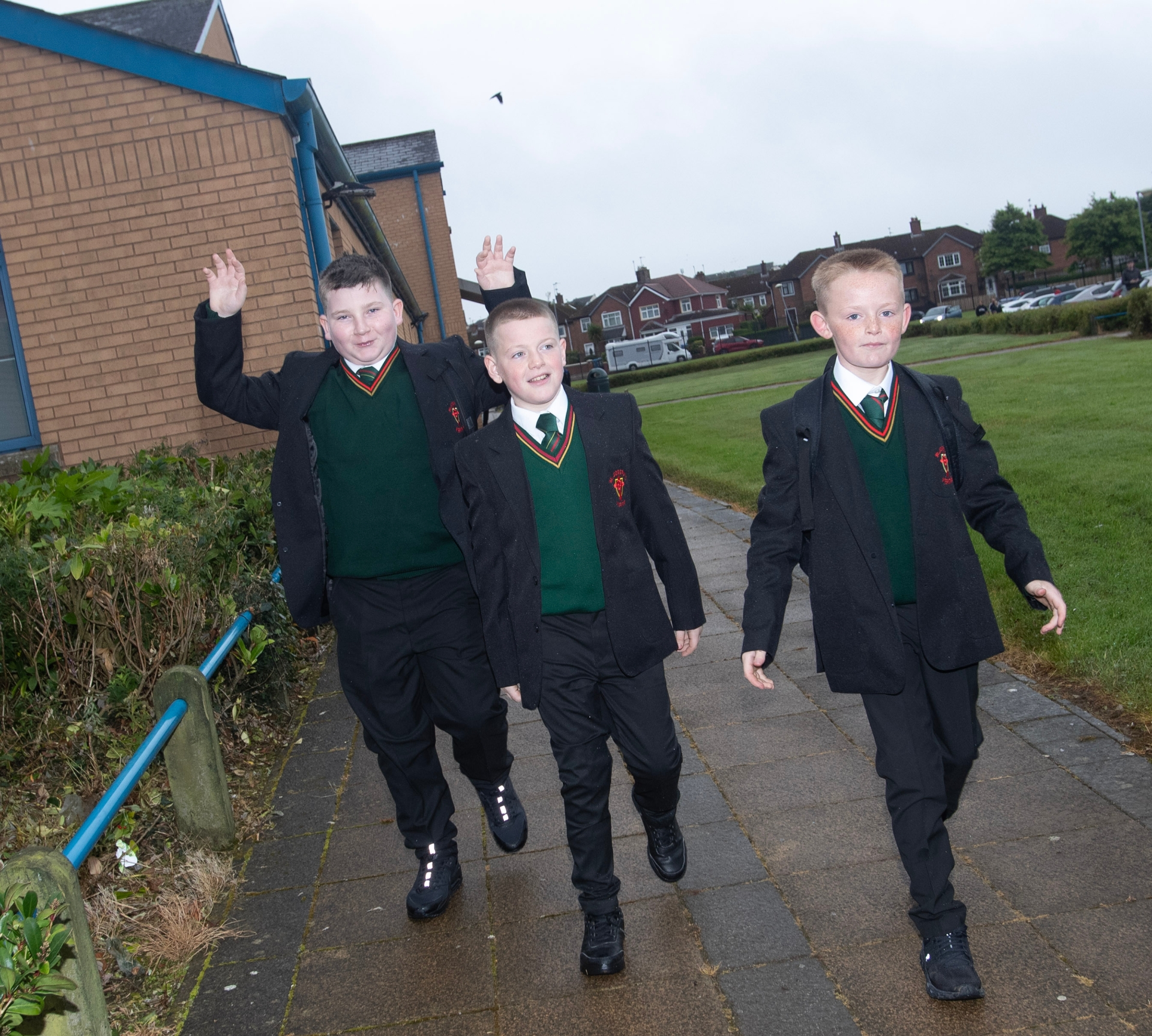 Some of the new Year 8 intake at St. Joseph's Boys School make their way to school on Monday morning. From left, Aaron Kellyk Jack O'Hagan and Shea McDaid.