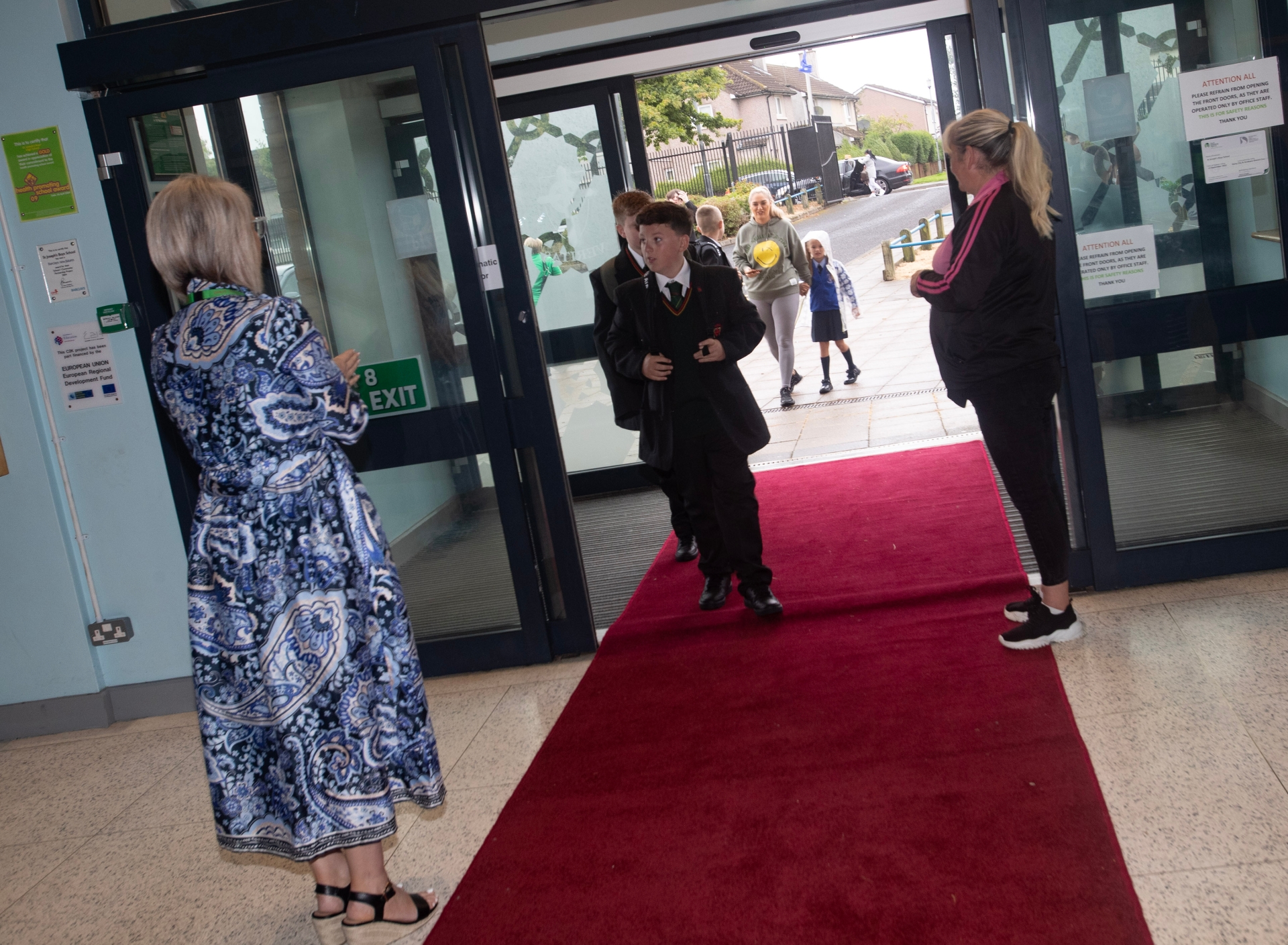 RED CARPET. . . .New Year 8 students make their way through the doors of St. Joseph's Boys School on Monday morning.