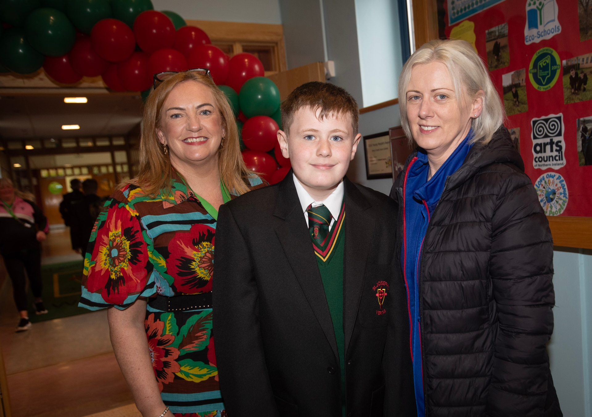 Year 8 student Corey Watson and his mum Donna are welcomed to the school on Monday morning. (Photos: Jim McCafferty Photography)