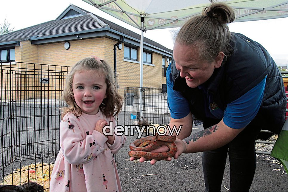 Gillian shows Ara-Bella a corn snake named Sally. (Photos - Deirdre Heaney, nwpresspics)