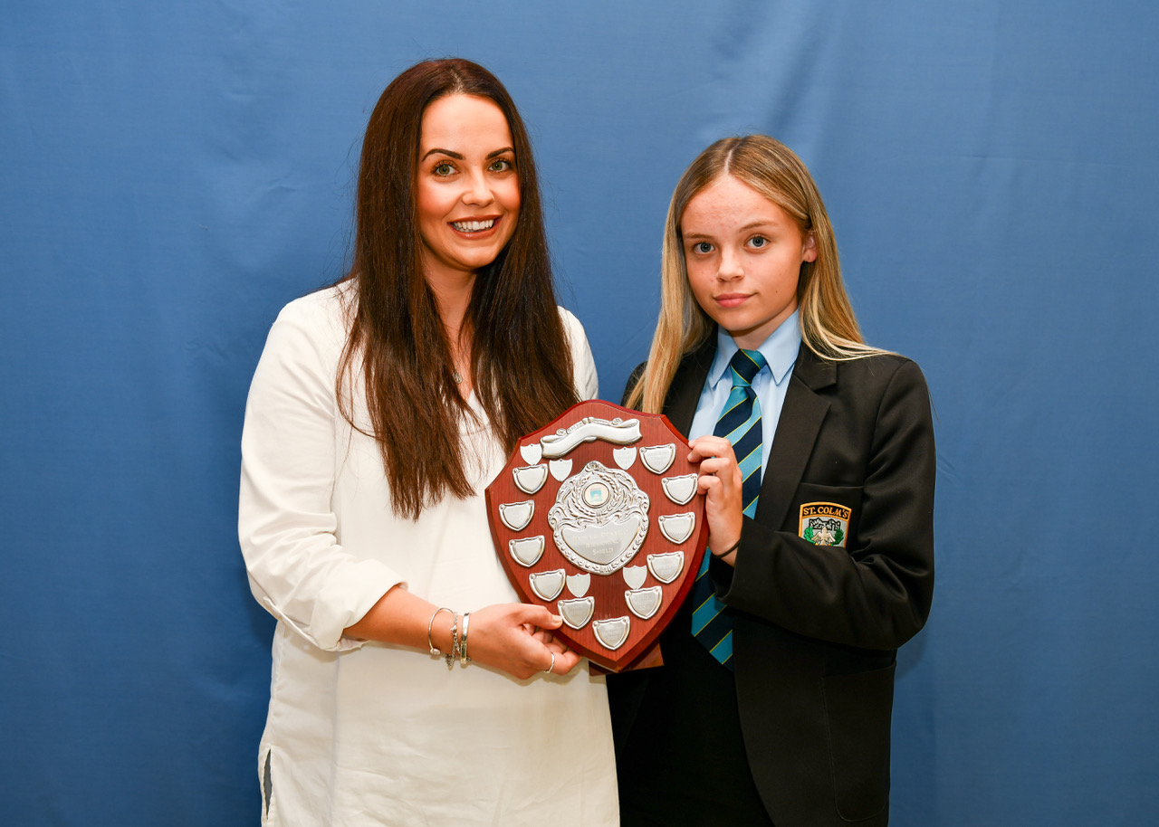 Eimear Hegarty presents The Padraig Donnelly Memorial Shield to Kayla McGuigan.