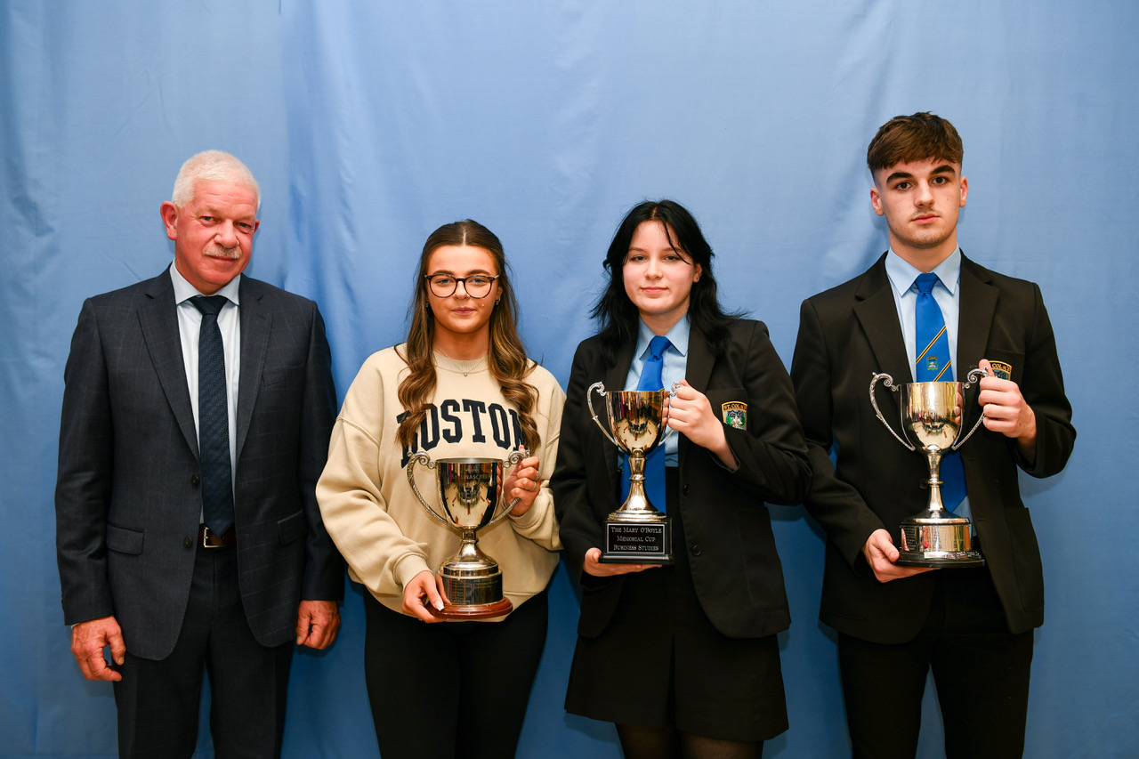 Caitlin Doherty, Natalia Walaszek and Rowan O’Kane receiving cups on the night.