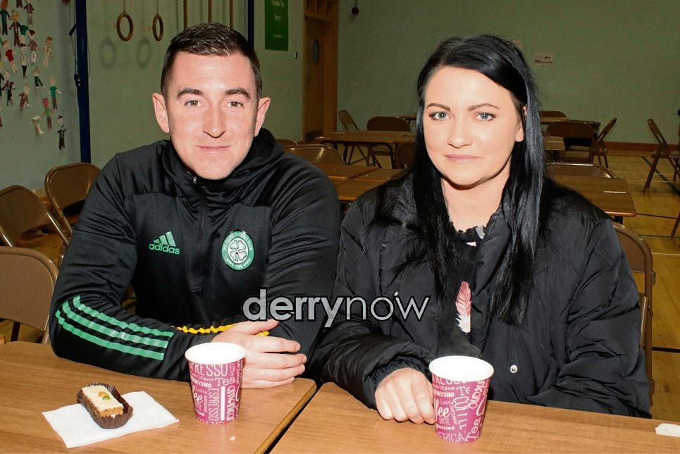 Enjoying a cuppa are Oisin Mooney and Elizabeth McGinley.