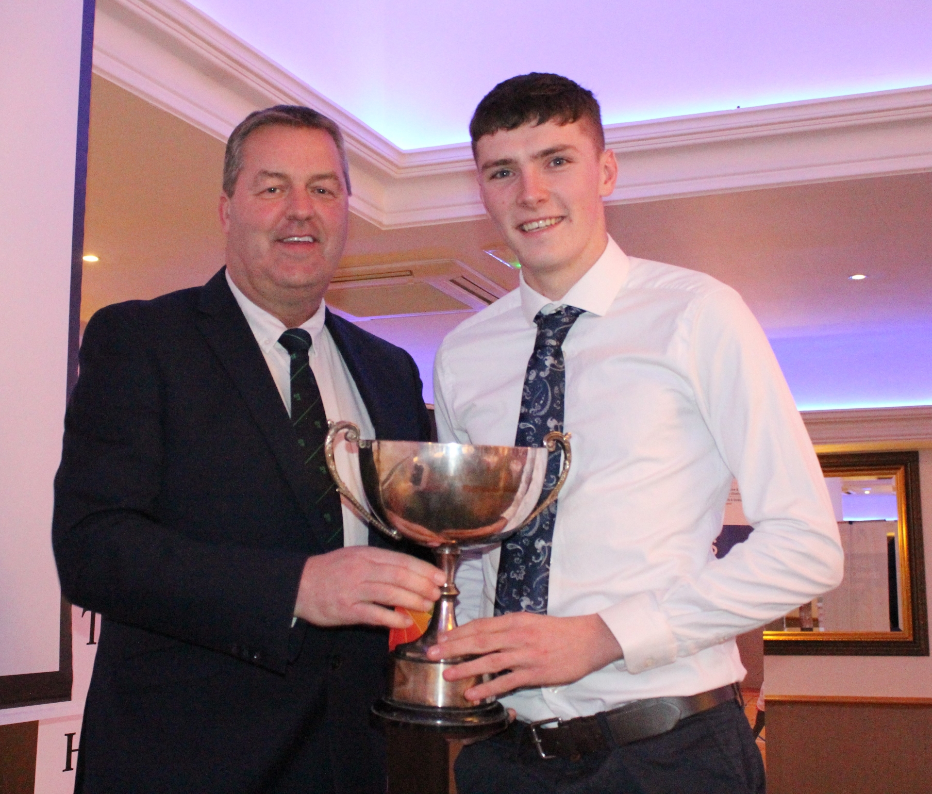 Cricket Ireland Chair Brian MacNeice presents the Radio Foyle Player of the Year award to Brigade's Scott Macbeth