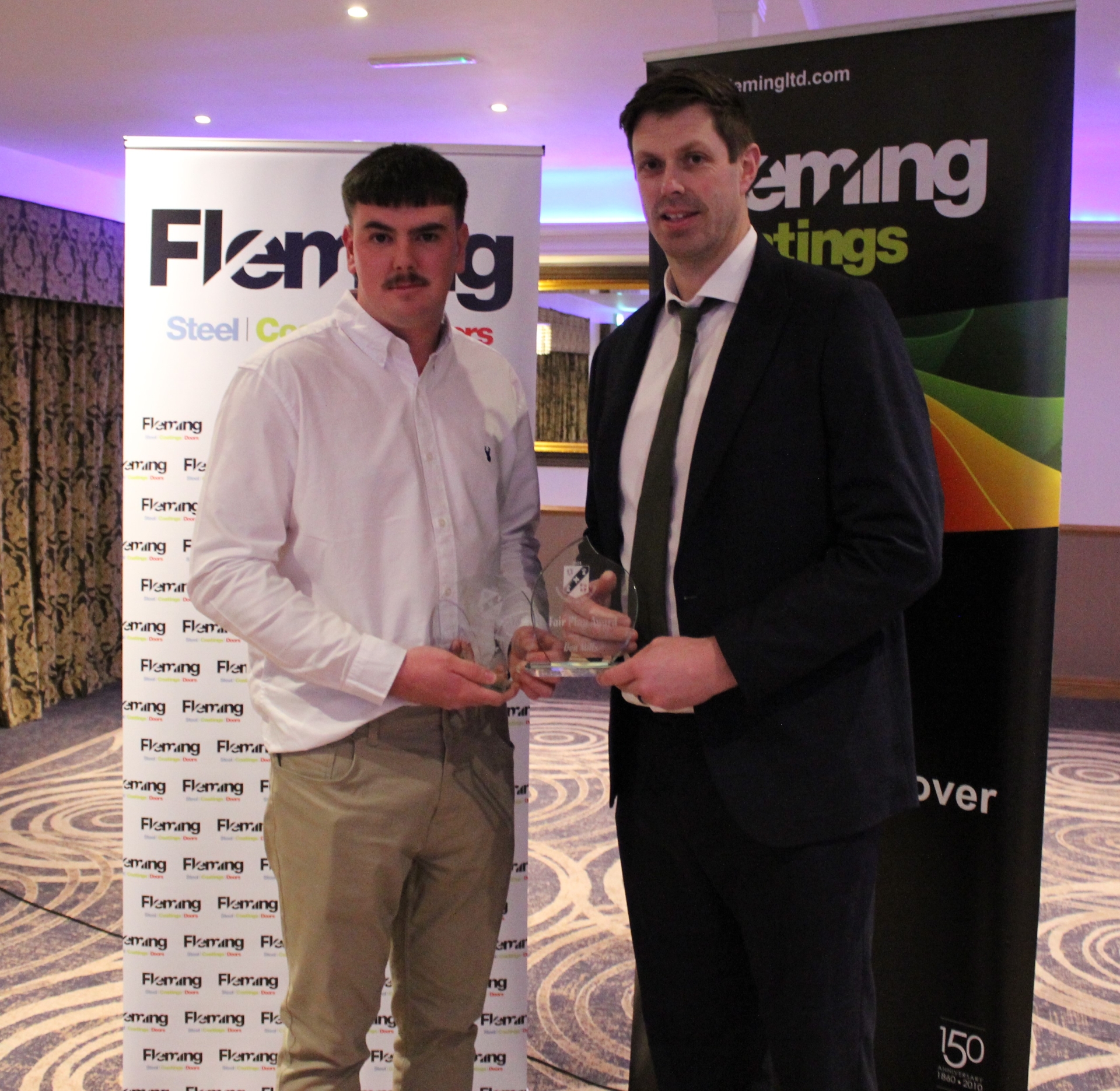 Glendermott's Ben Mills is presented with the Fair Play award by former Ireland and England International, Boyd Rankin