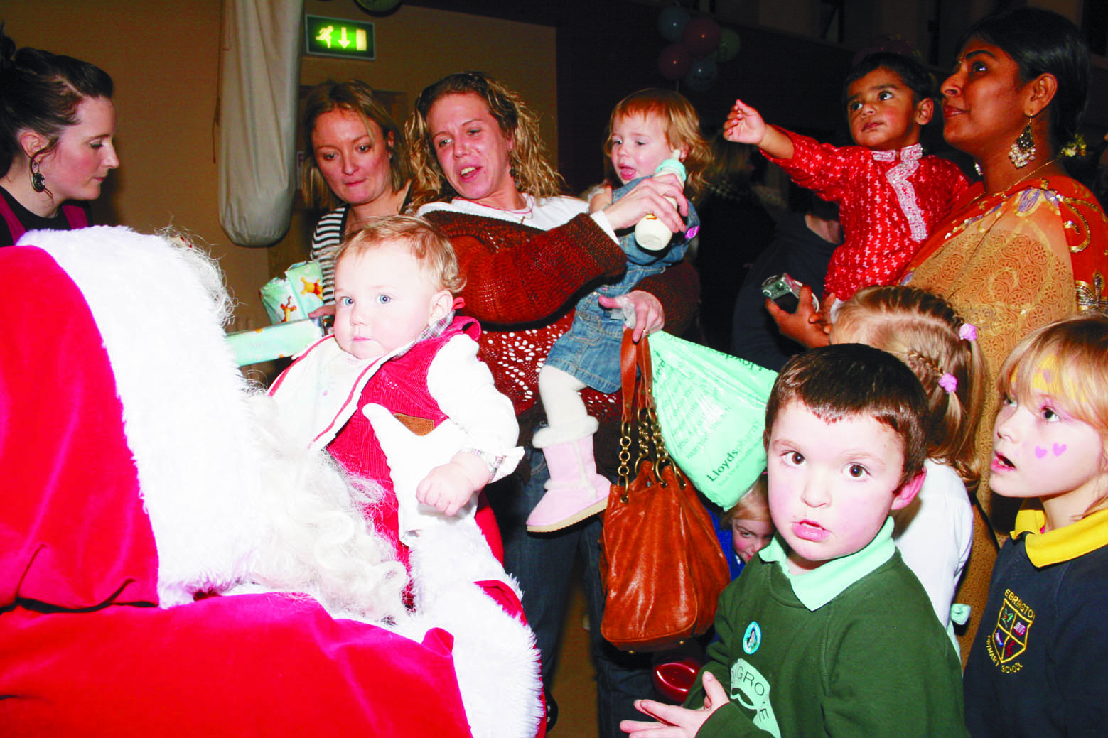 Santa gets swarmed by all the children at the Clooney Family Centre Christmas party.