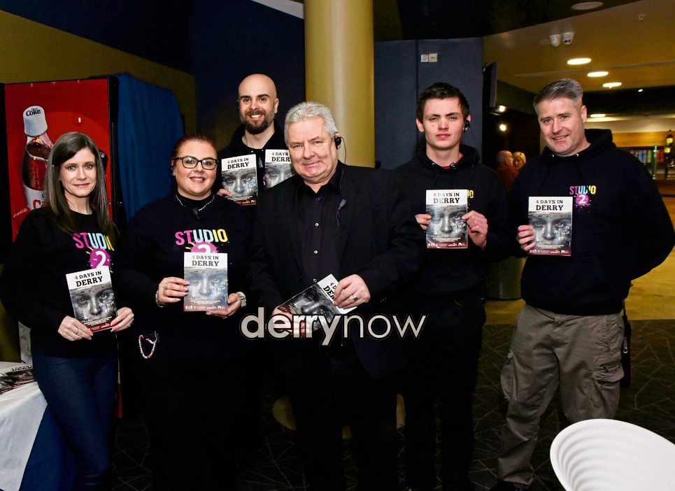 Oliver Green, Producer 4 Days in Derry, pictured with members of Greater Shantallow Community Arts, Studio 2 Derry.