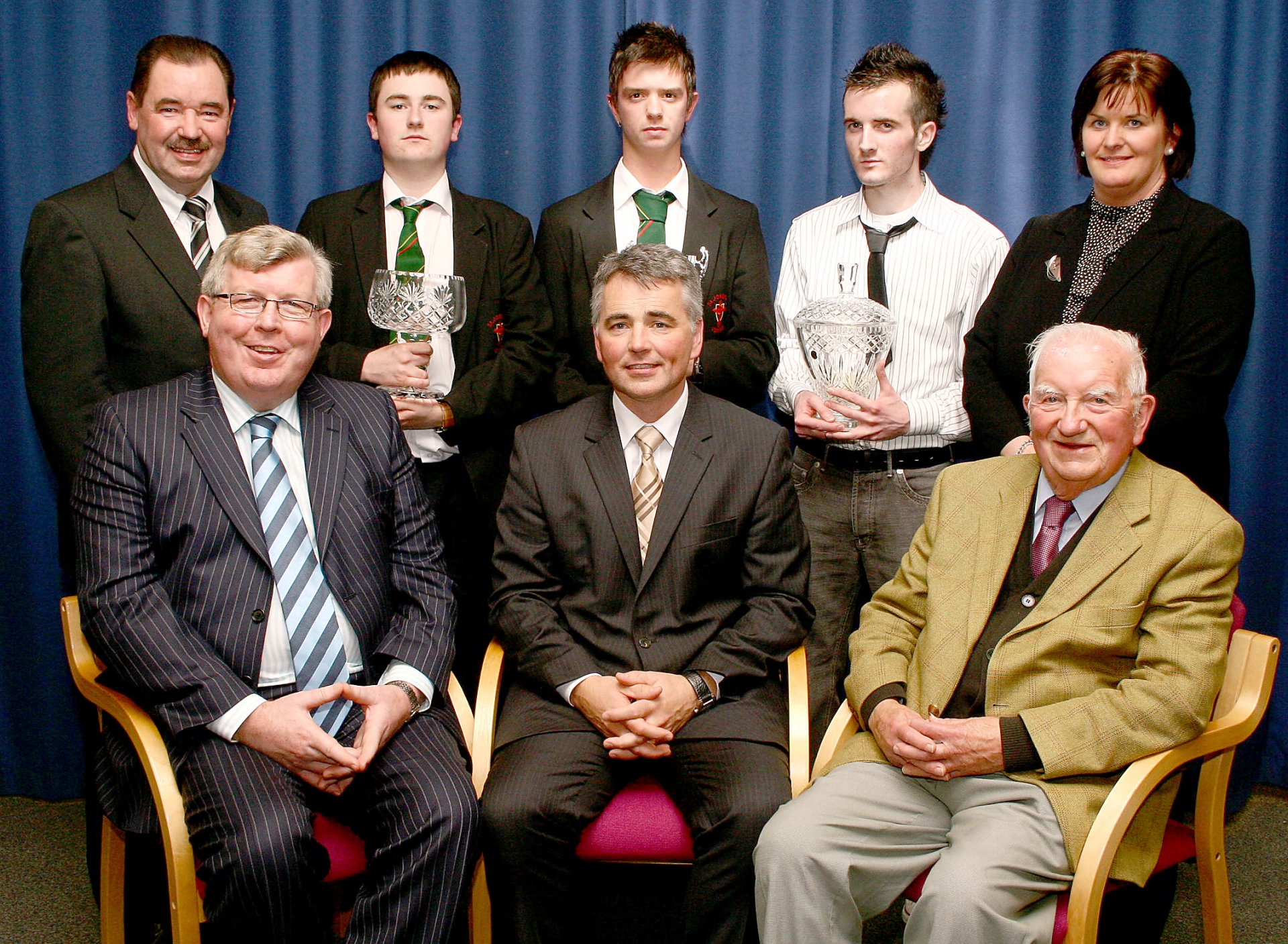 Group pictured at the St. Joseph's annual prizegiving night at the school. Front from left are Mr. E. Gallagher, B.O.G., Mr. D. Harkin and Mr. James Doherty, B.O.G. Back from left are Pat O'Doherty, B.O.G., Conlaoth Rodgers, Darren Breslin, John Doherty and Siobhan McIntyre, B.O.G.