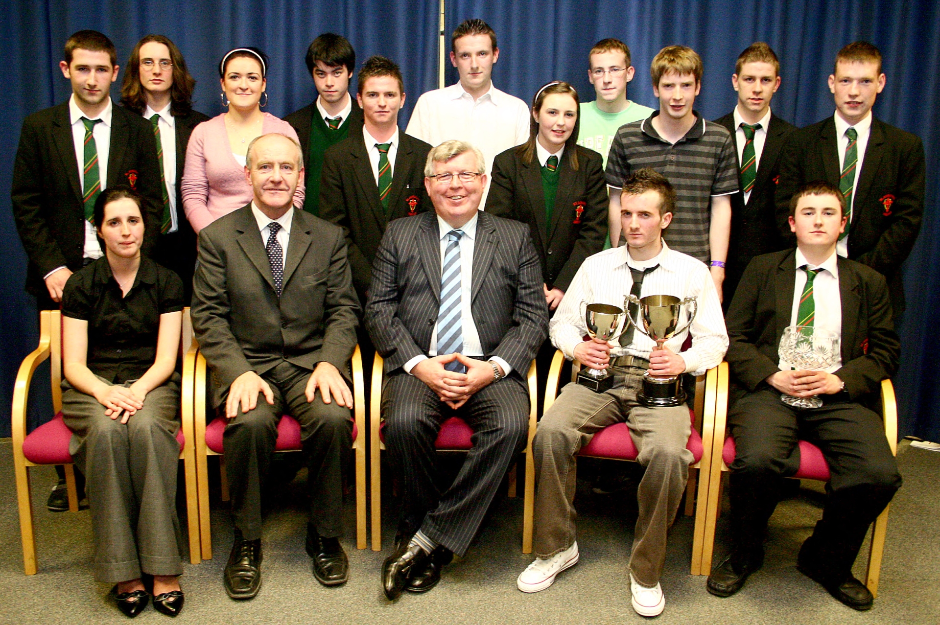 St. Joseph's Boy's pictured after being presented with their Best AS/A2 awards. Front from left are Martina McConomy, Mr. Patrick Durkan B.O.G., Mr. Eugene Gallagher B.O.G., John Doherty and Conlaoth Rodgers.