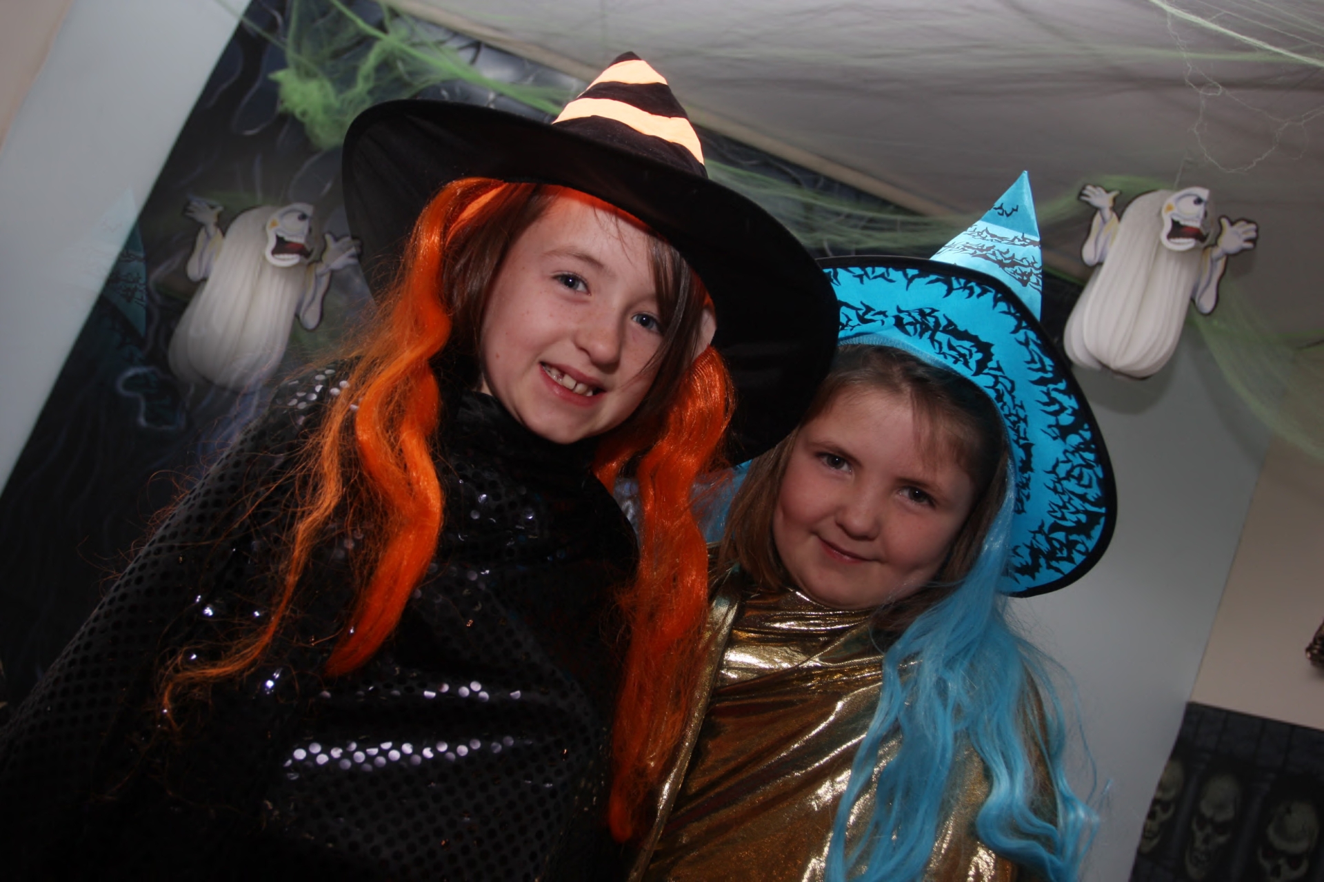 Spooky witches Niamh & Aoibheann Carlin enjoying Foyleside's Haunted House.