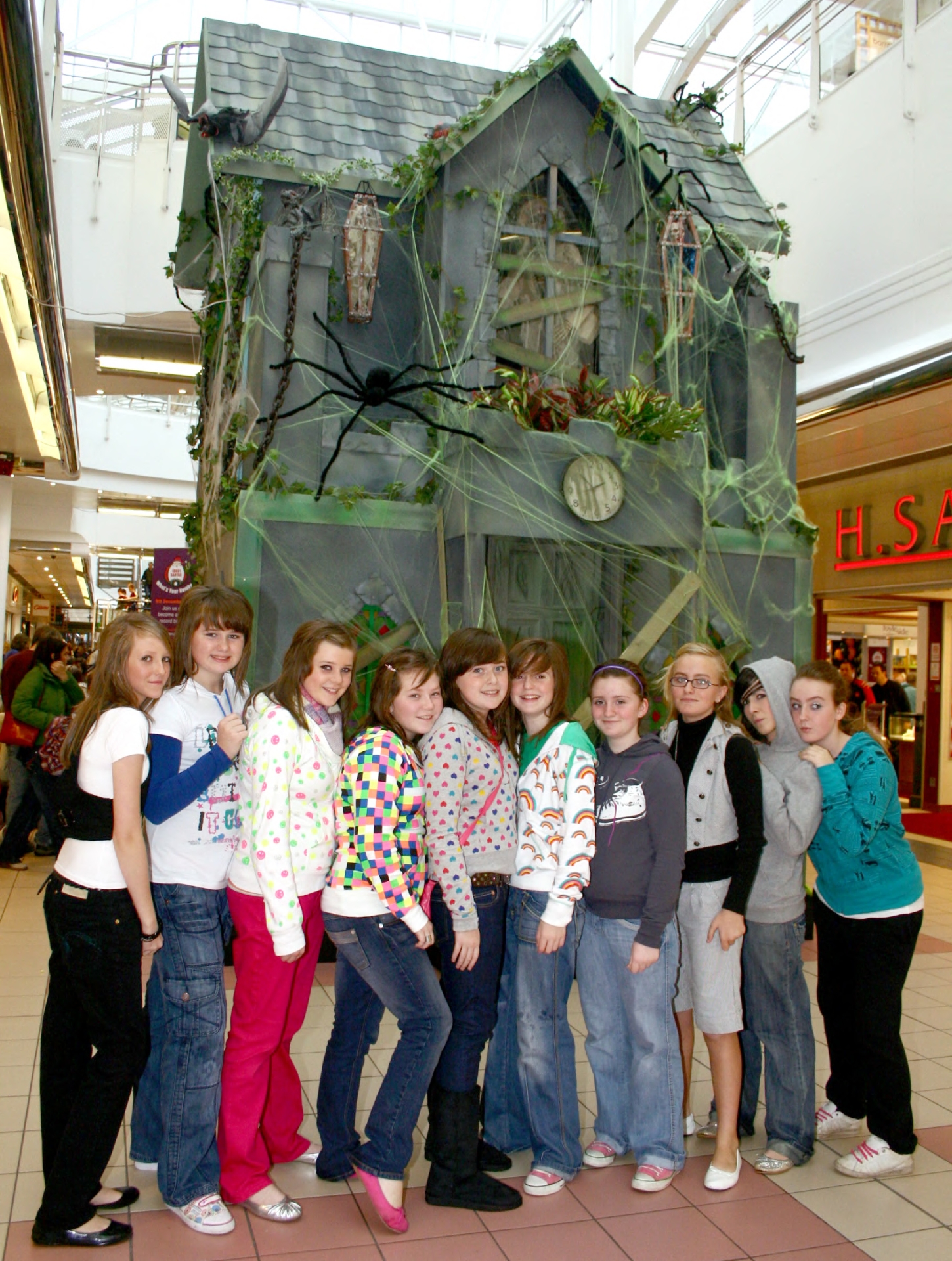 Local teenagers pictured at the Foyleside Haunted House that will be set up for the duration of Halloween. From left are Kayleigh Barnfield, Gemma McDermott, Emma Smith, Sorcha Brady, Emer Smith, Caoimhe Guille, Dearbhla Page, Melissa Campbell, Serena Deeney and Tammy Stewart.