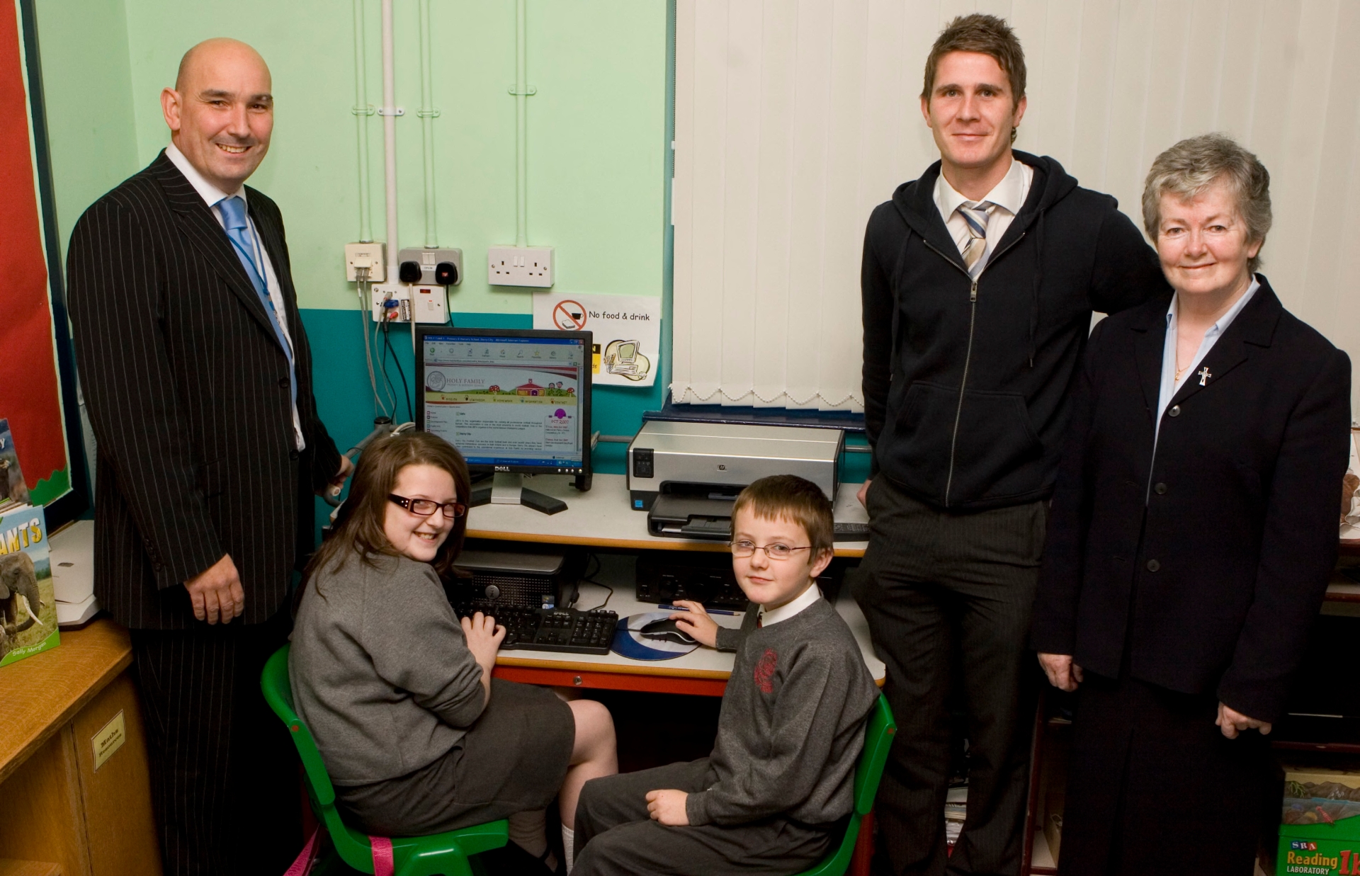 Group pictured at the launch of the Holy Family PS new website. The site, www.holyfamilyps.com, provides current information on all aspects of school life. From left, are Garry Matthewson, principal, Amy Donaghy, Matthew Boyle, Gavin Doherty, assistant ICT co-ordinator, and Sr. Ann Doherty, school governor.