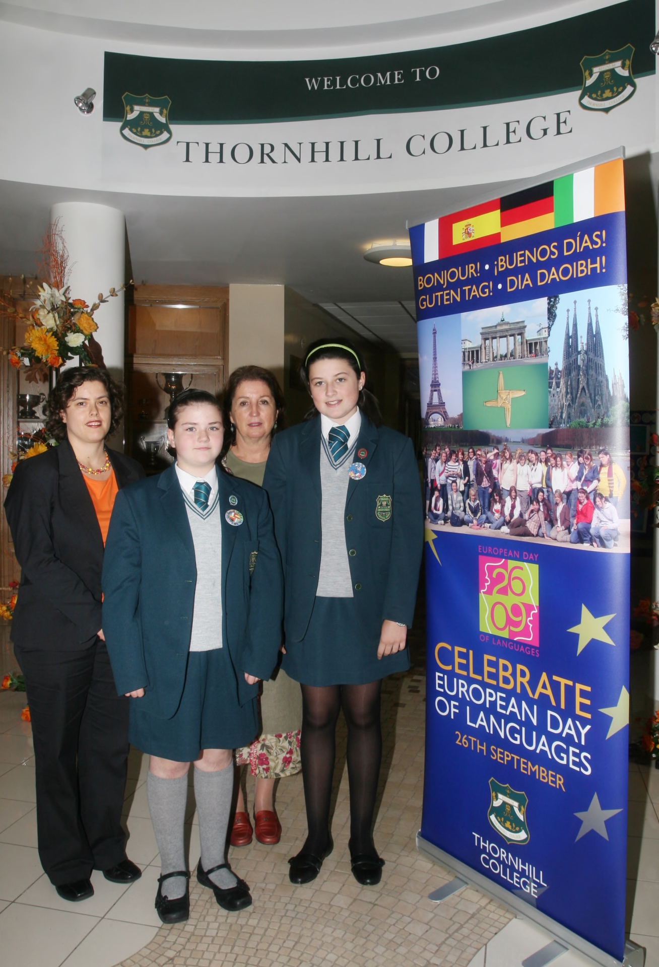 Thornhill College pupils Aine McElholm, Year 8 front left, winner of the Badge competition, and Aimee Sheerin, Year 10, overall winner of the Badge Competition, one of several events organised to celebrate European Languages Week. Also pictured, Senora Vanessa Vega Hurst, Spanish Teacher & Senora McKenna, Head Modern Languages.