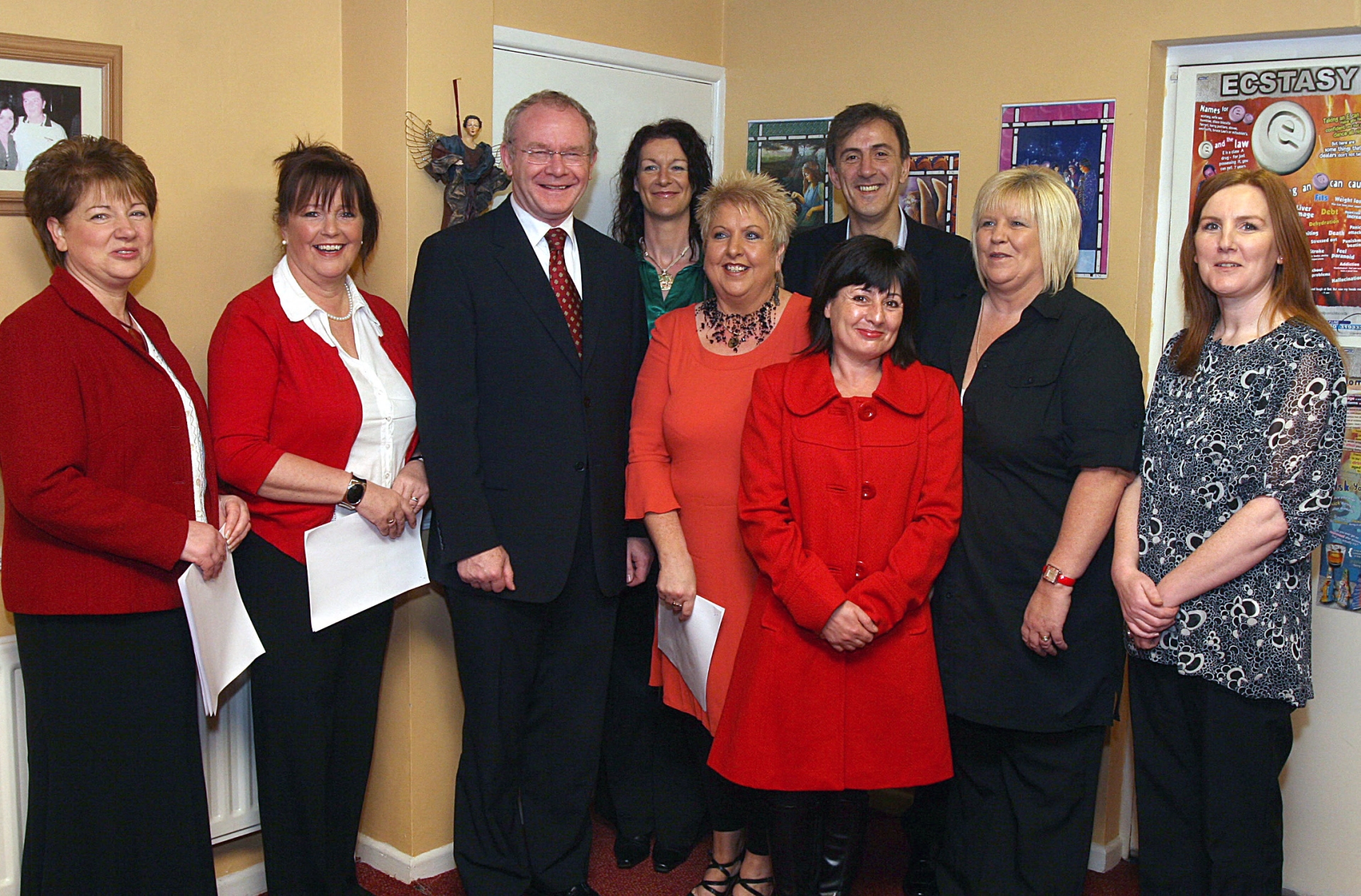 The Deputy First Minister Martin McGuinness, MLA, on a visit to the charity Hurt (Have your Tomorrows), at Clarendon Street in Derry, pictured with volunteers and staff members (from left), Margaret Ferguson, Rose McCartney, Sharon Doherty, Sadie O'Reilly, co-ordinator, Vincent Sharkey, Nina O'Hagan, Bridie McDonnell and Michaela Elliott.