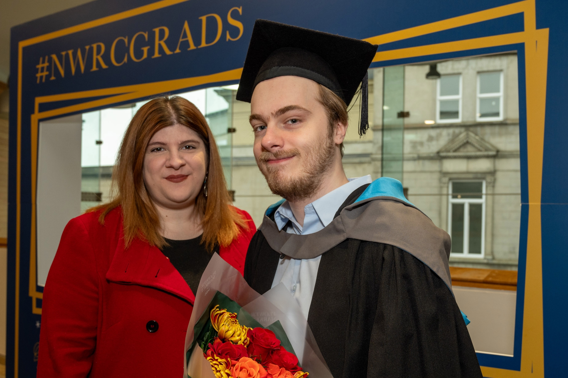 Graduate Ciaran Hegarty and Ioanna Ladopoulou pictured at North West Regional College's 2025 Higher Education and Access Graduation ceremony.