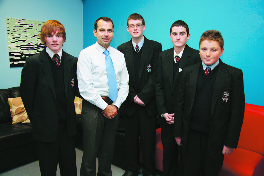 Mr Michael Quigley head of key stage 3 with pupils who received year prizes from left Shaun Doherty, Caolan Cullen Jonathon McBay and Nathan Dunne