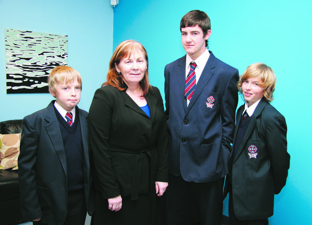 Vice principal Geraldine Mellon with pupils who received attendance awards from left Kai Mullan, Gary Strunks and Eamo Brown