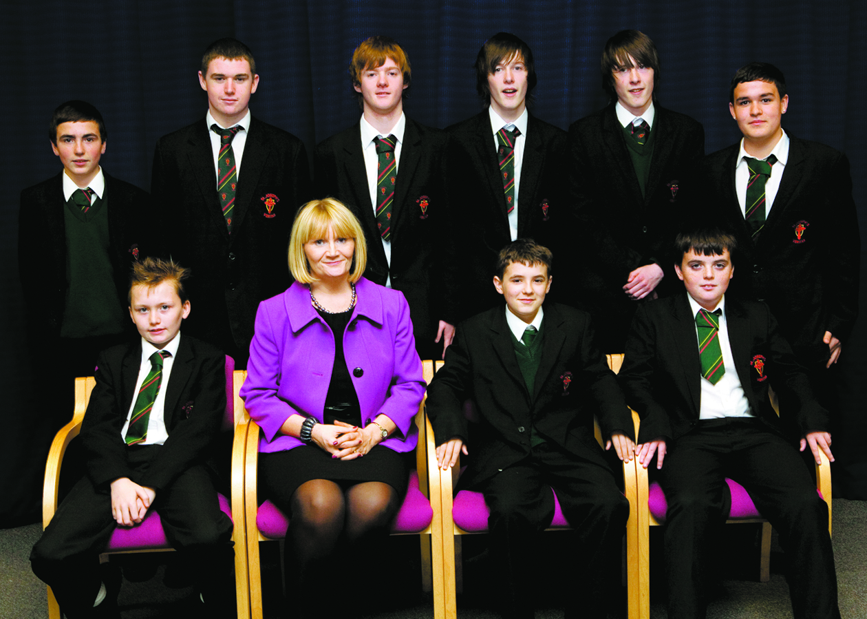 Martina McCarron, vice-principal with students who received Attendance Awards for five years or more. Seated, on left, are Ciaran Martin, and, from right, Jasen Abel and Niall McCafferty. Standing, from left, are Gary McClelland, Lee Porter, Caolan Davis, Connor Shiels, Emmet Shiels and William Doherty.