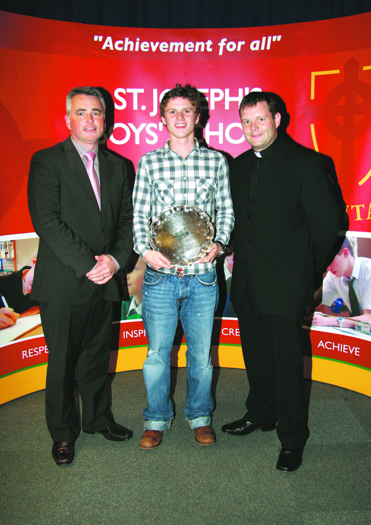 The Principals award was given to Eamon Colhoun also pictured is Principal Mr Harkin and Father McFaul