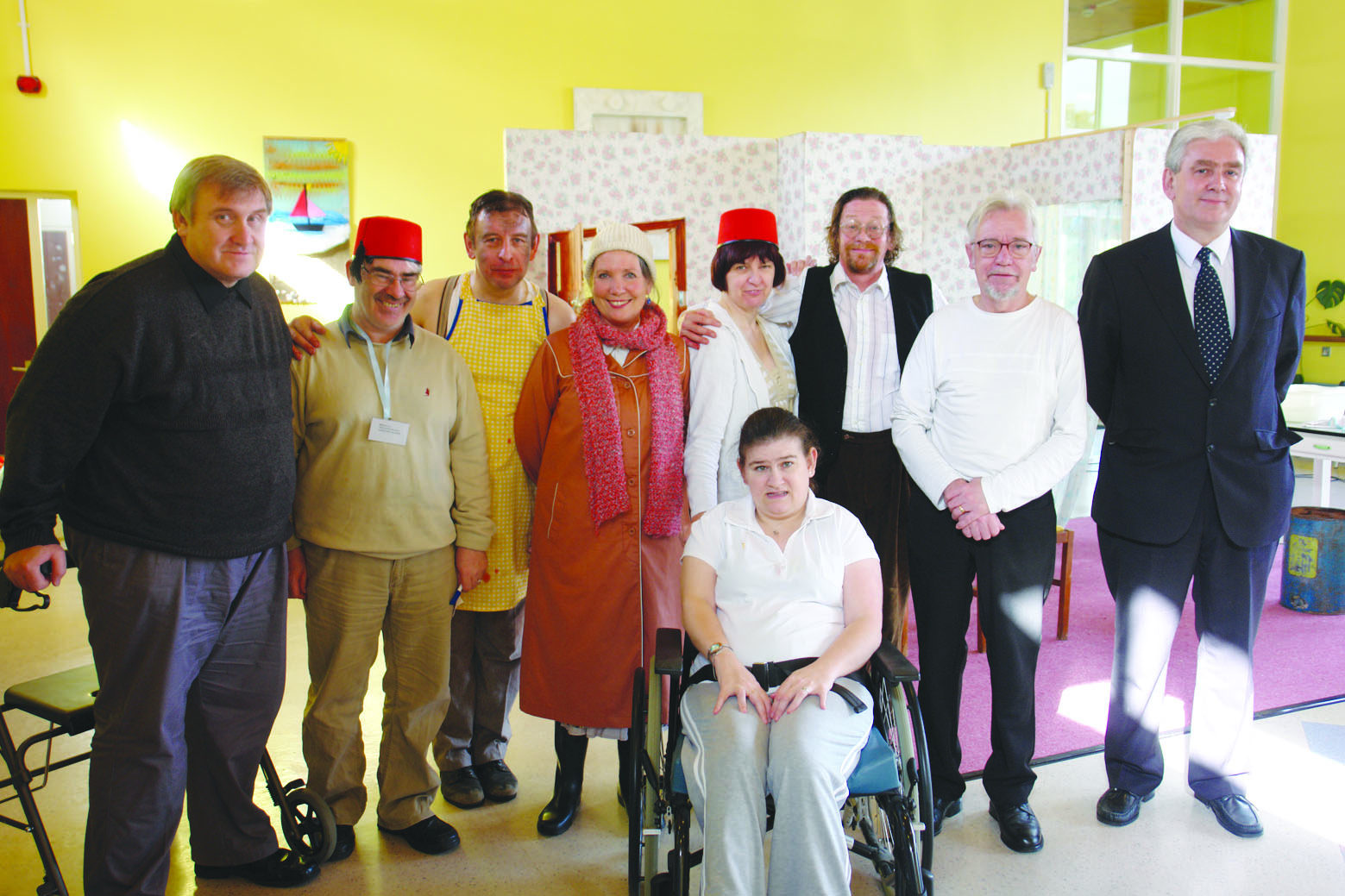 Users of FDRC meet the Big Telly actors after their performance (L-R): Alan Lesley; Brian Parson; John Anthony Murphy, actor; Nuala Hayes, actor; Eugenia McDaid; Brendan Conroy, actor; John McCready; Cathal MacElhatton, FDRC Centre Manager for the Western Trust; and at front Patricia Clifford.