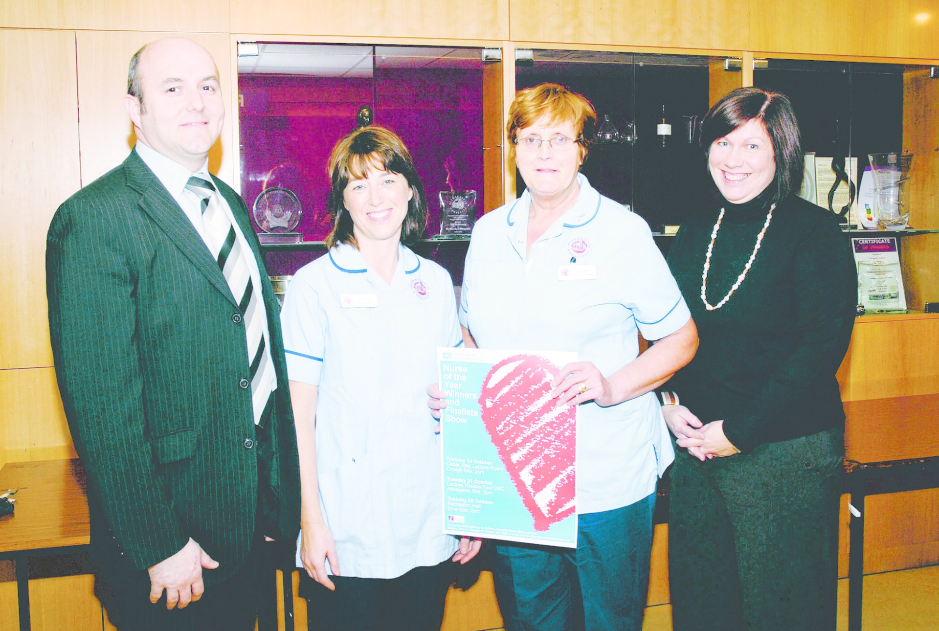 Promoting the Nurse of the Year Awards Road Shows being held across the Western Health and Social Care Trust are (from left): Brendan McGrath, Western Trust Assistant Director of Nursing; members of the breast care team, which picked up an award in 2008, Fiona Rankin and Celine Duffy; and Gillian McCorkell Western Trust Senior Nurse, Research and Development.