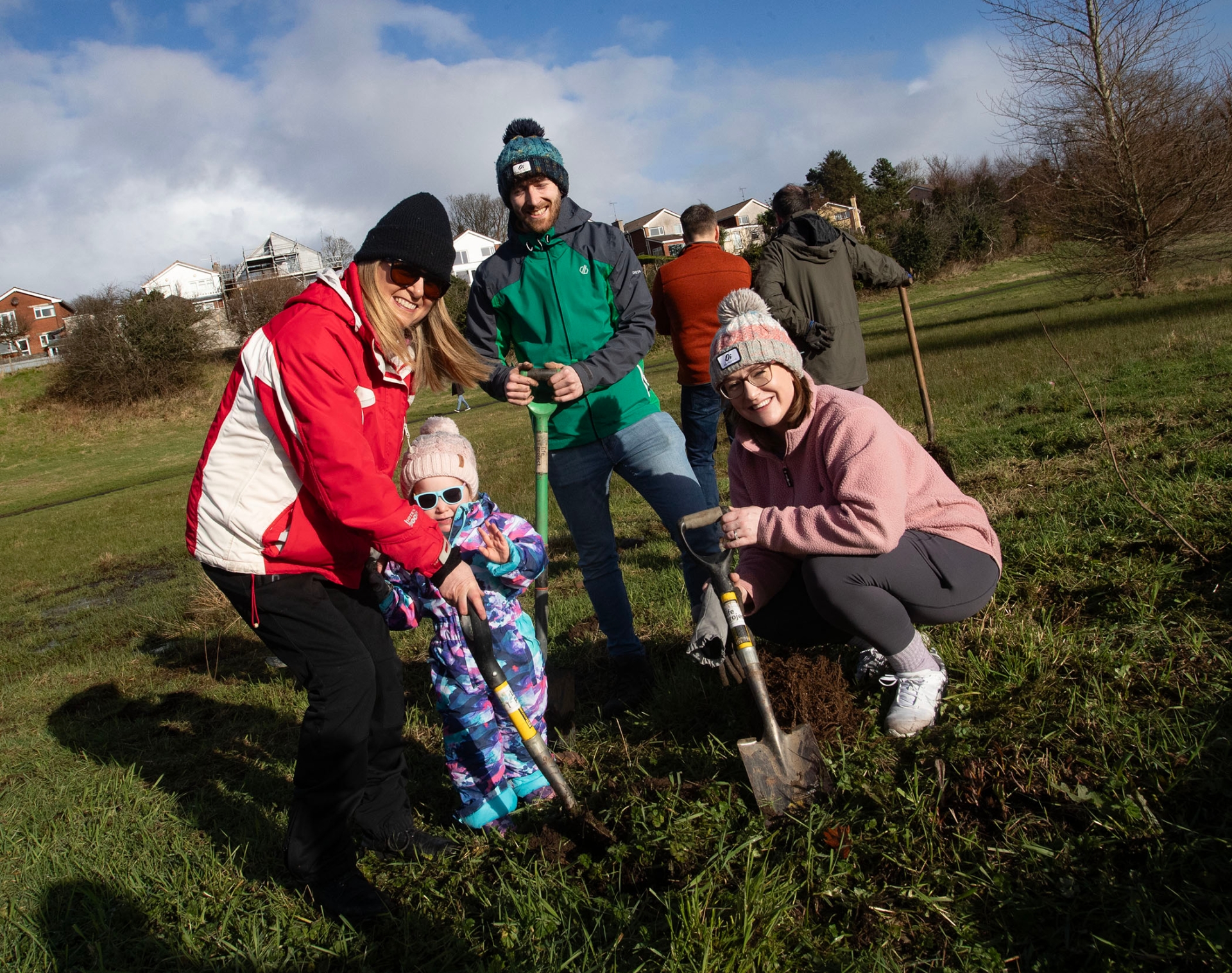 Having fun at Saturday's DCSDC Special Tree Planting at Bay Road Park are the Quinn family Siobhan, Holly (2) and Sarah. Back centre is Christopher Fagan.
