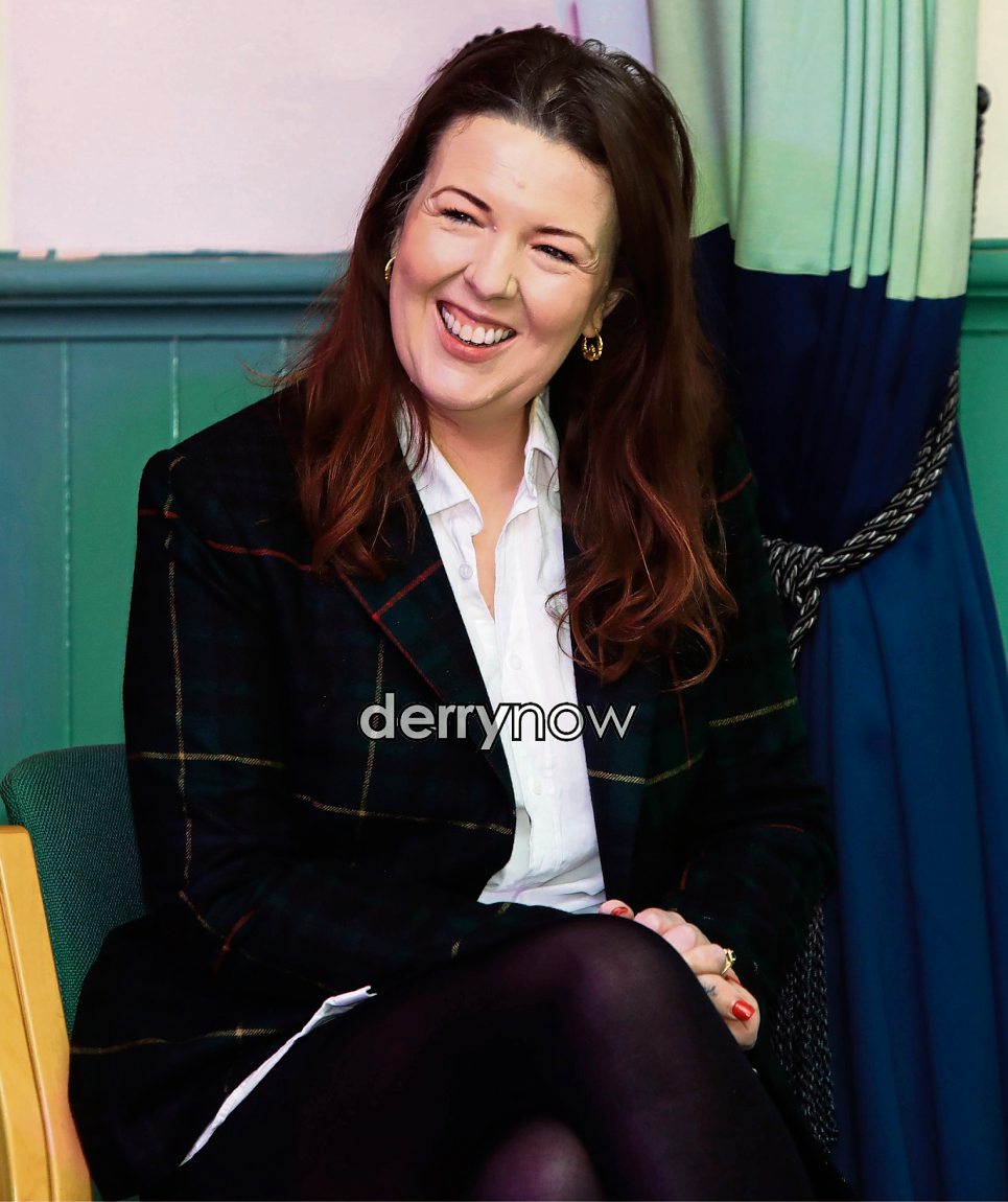 'Derry Girls' creator Lisa McGee enjoying her visit to her old primary school, Longtower PS, last Friday. (Photos - Tom Heaney, nwpresspics)