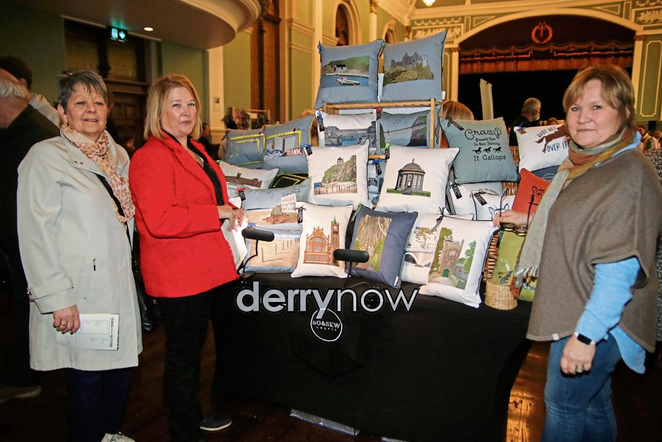 Francesca McDowell and Bronagh Elliot pictured with Jennie Hughes, So & Sew Crafts. (Photos - Deirdre Heaney, nwpresspics)