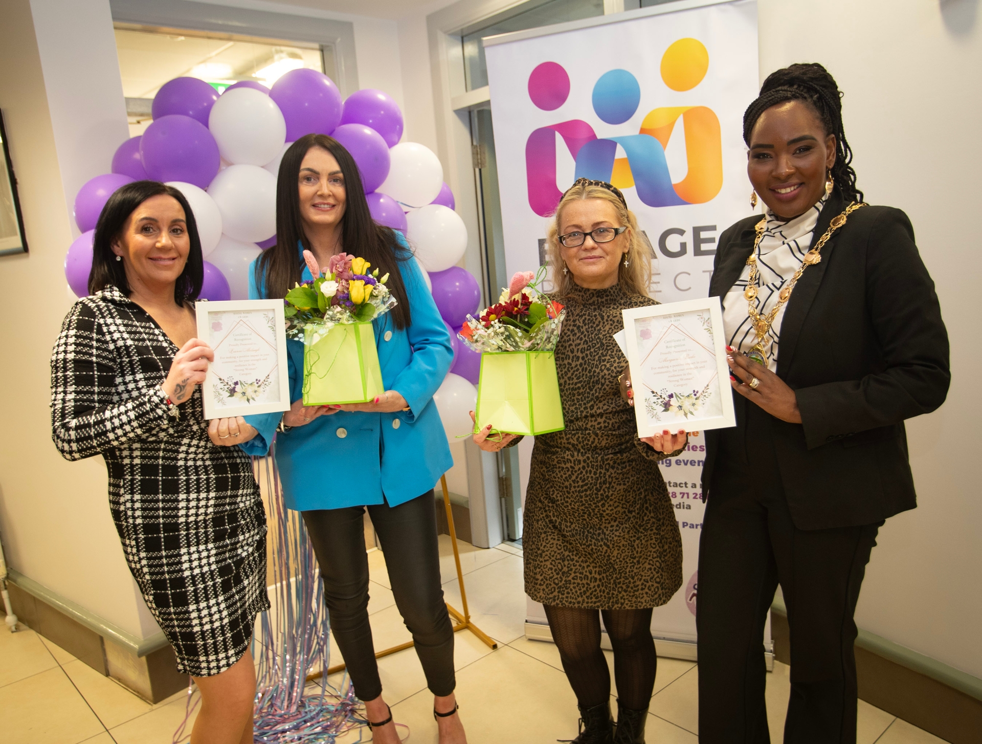 Strong Women winners Leeanne Melaugh and Marguerite Burke receiving their 'Rising Women' awards from Kellie McBrearty, Community Development Engage Project Officer and the Mayor, Lilian Seenoi-Barr at Saturday's event.