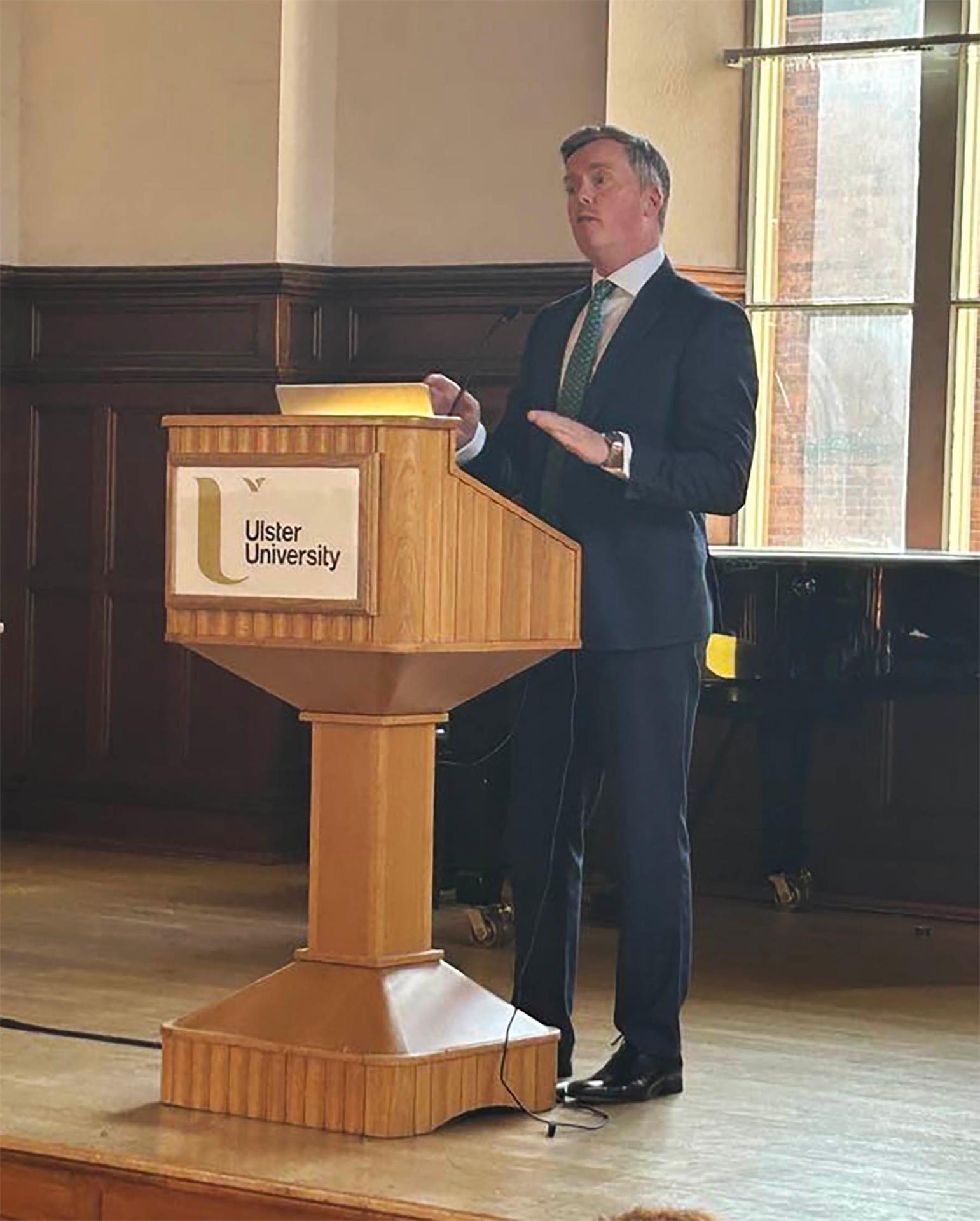 Keynote speaker and former St. Columb's College student, Professor David Hassan addressing the attendance at Friday's St. Columb's College Round Table Careers Event at Ulster University Magee.