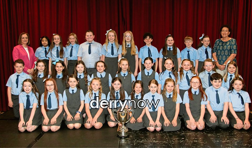St. Anne's PS pupils, winners of the Bishop Daly Cup for Sacred Music. Included are, Nicola Soal, music teacher and Michaela Doherty, accompanist.