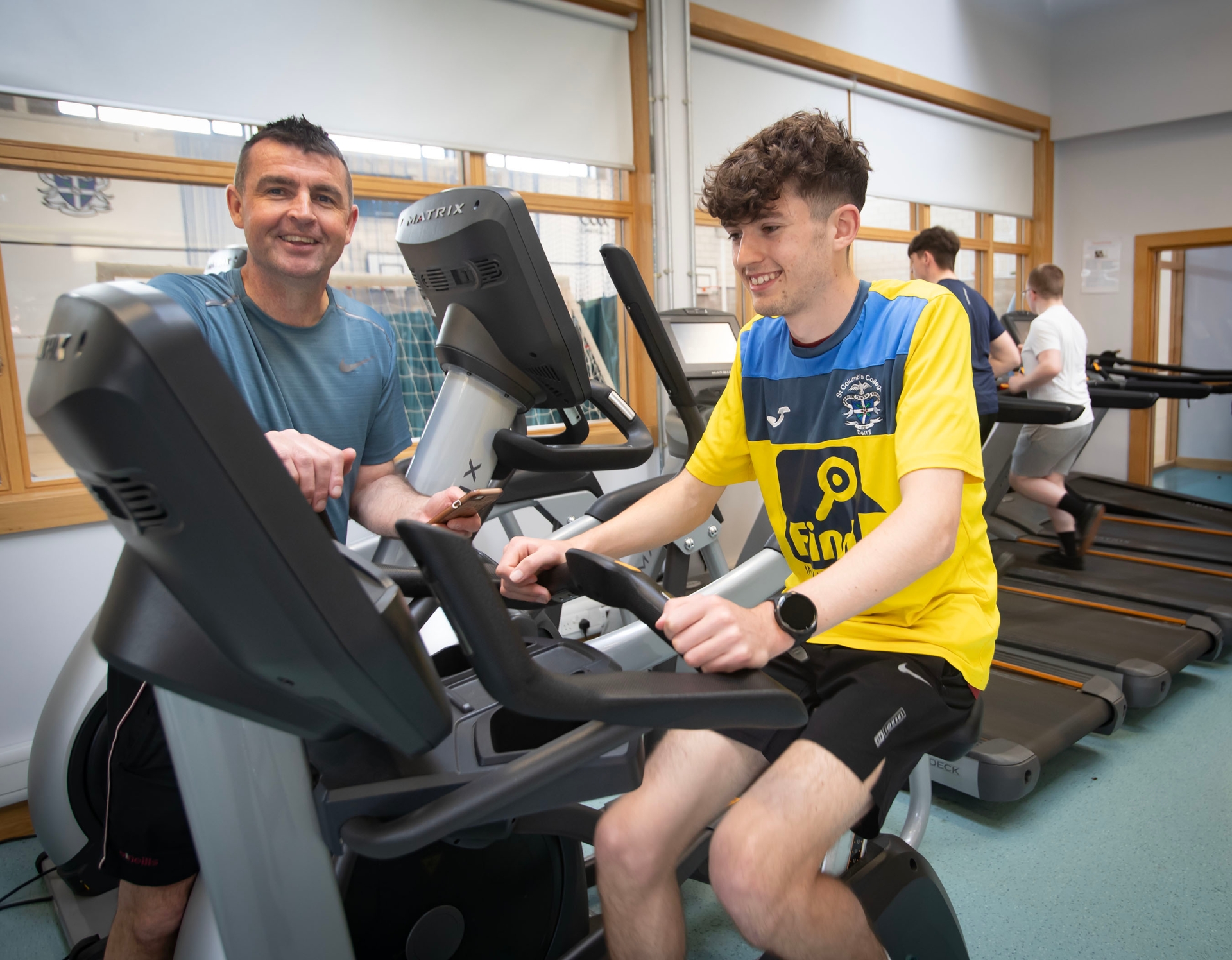 Dan being put through his paces at St. Columb's College by Mr Burns, Head of PE.