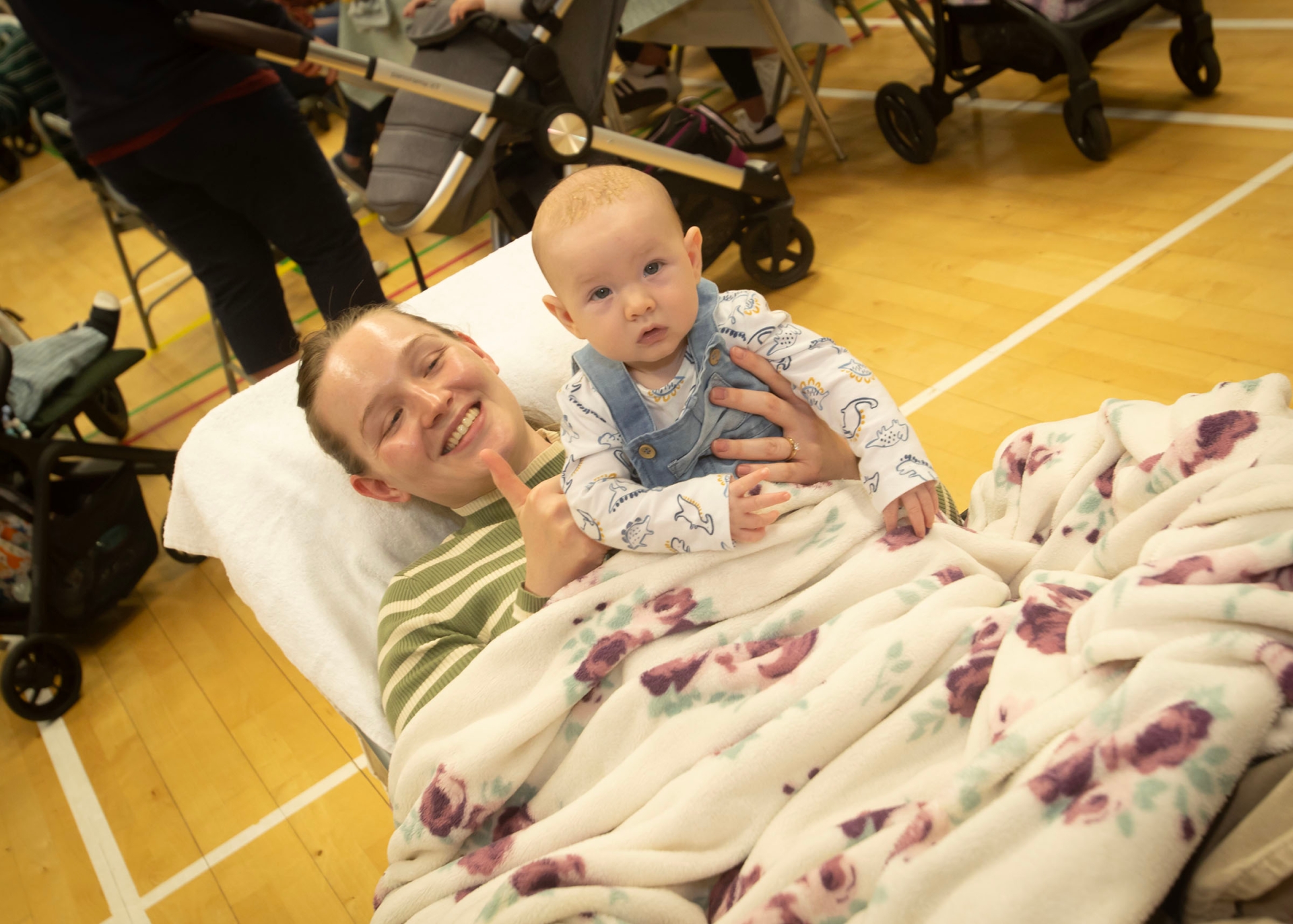 Mum and baby relaxing during Thursday's Minding Mum Social Cafe at the Foyle Arena.