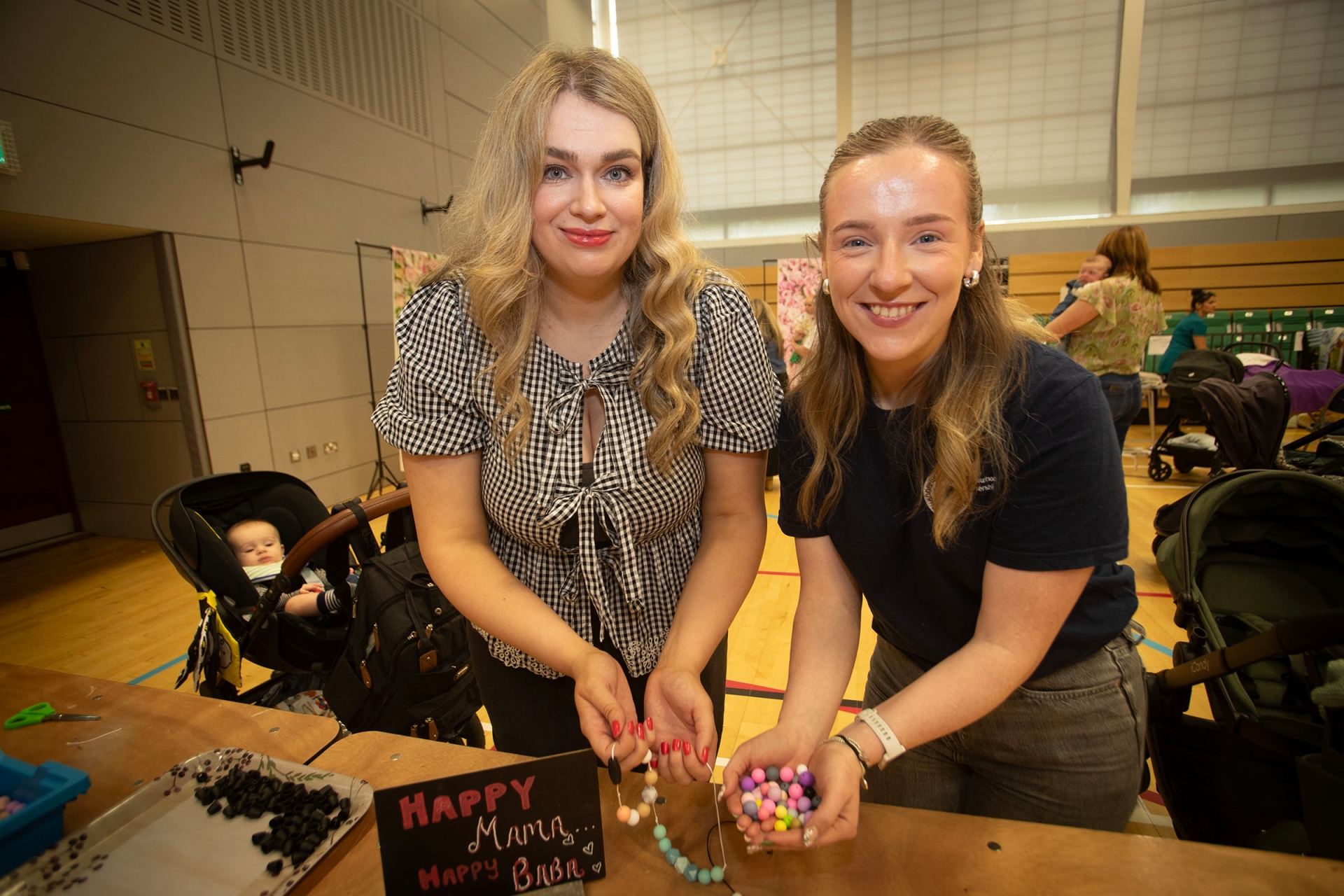 Pictured at the 'Happy Mum, Happy Baby' stall on Thursday are Mum Kirsten McFeeley and Saorla Ni Chearullain. In background is six months old baby Patrick.