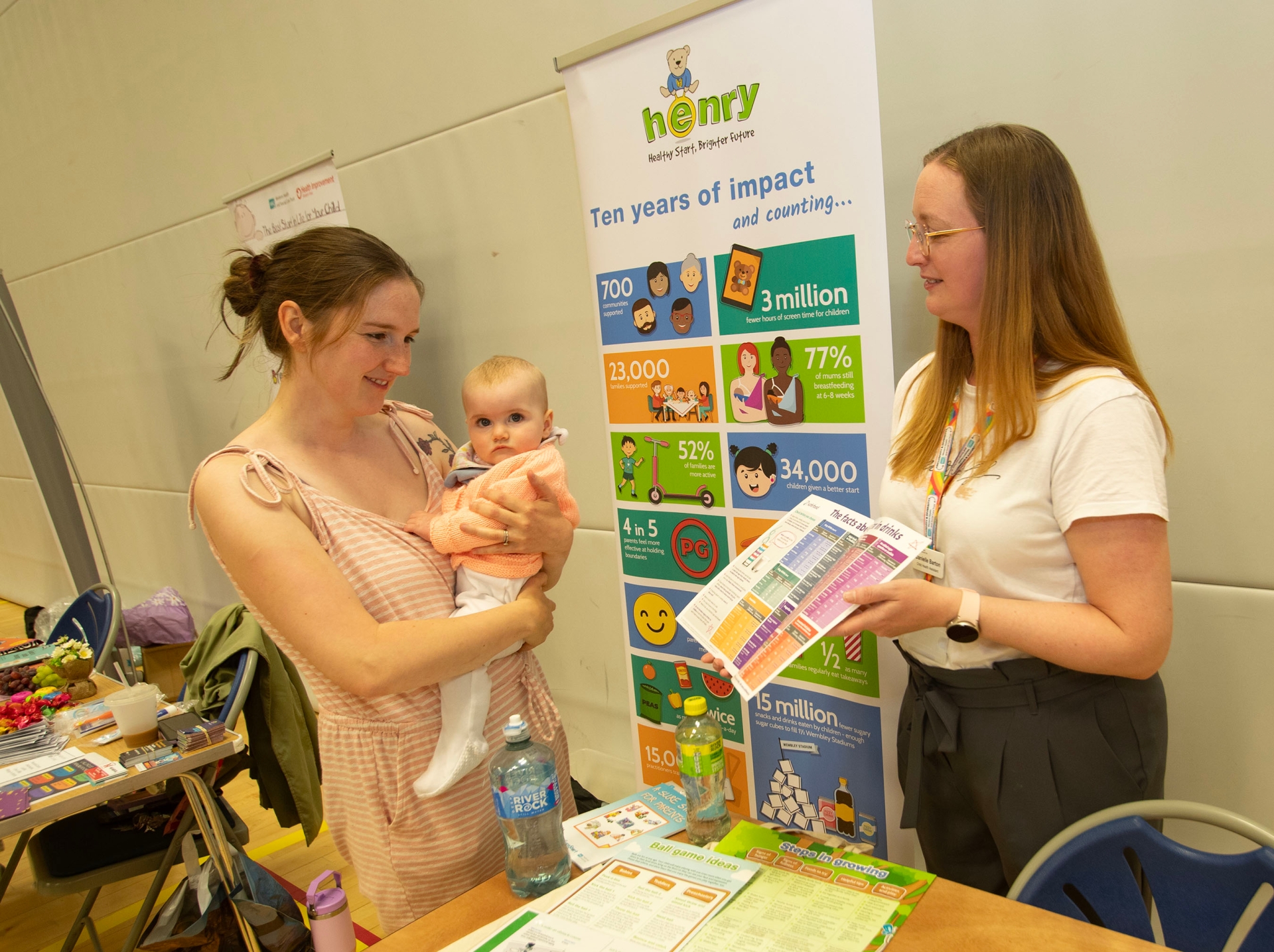 Mum Melissa McGonigle with 7 months old Murphy chatting to Danielle Barton at the 'Henry' stall on Thursday.