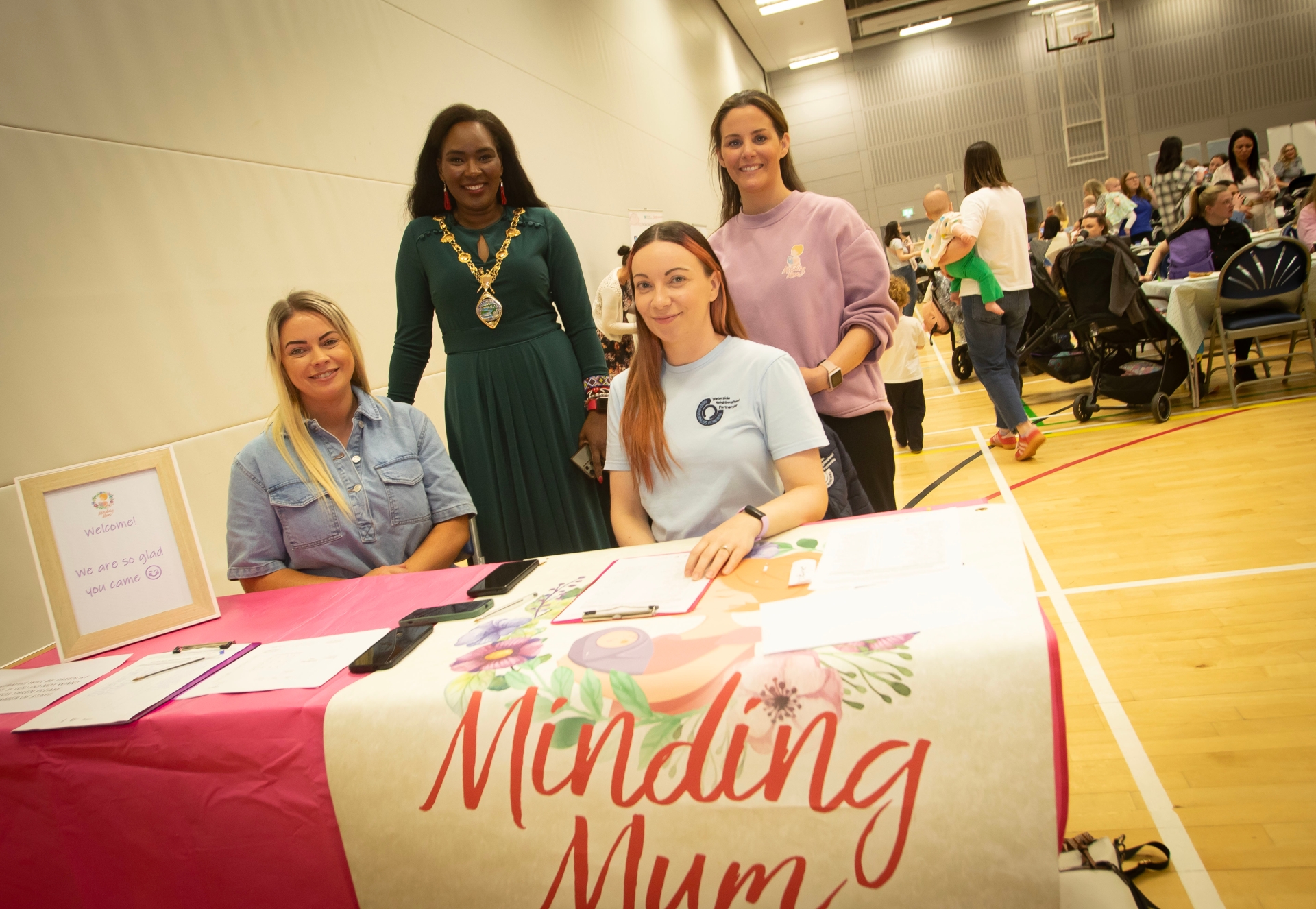 MINDING MUM SOCIAL CAFE. . . .. The Mayor, Lilian Seenoi-Barr pictured at Thursday's Minding Mum Social Cafe at the Foyle Arena with organiser Christine McBride. Seated are Janice Austin and Niamh Webster, Waterside Neighbourhood Partnership. (Photos: Jim McCafferty Photography)