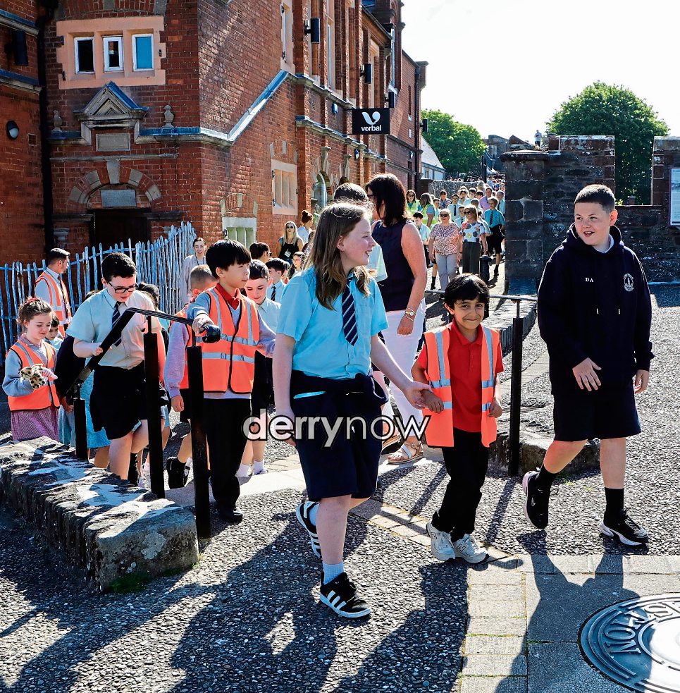 Pupils and staff from Long Tower PS and the Fountain PS participated in the event on Derry Walls