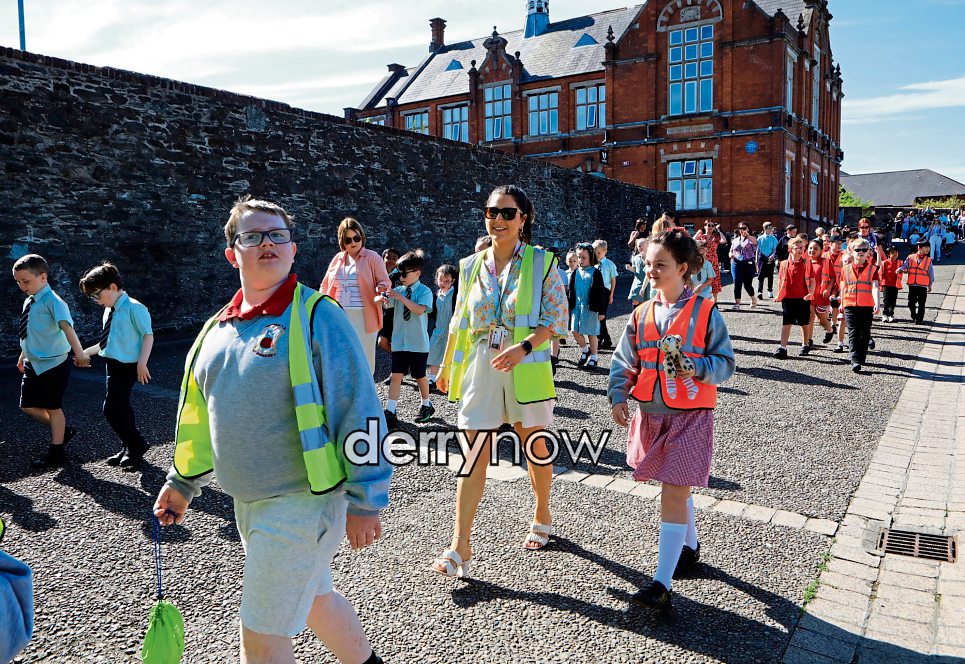 Pupils accompanied by staff from Long Tower PS and the Fountain PS taking part in the "Walk of Unity" on Derry Walls. (Photos - Tom Heaney, nwpresspics)