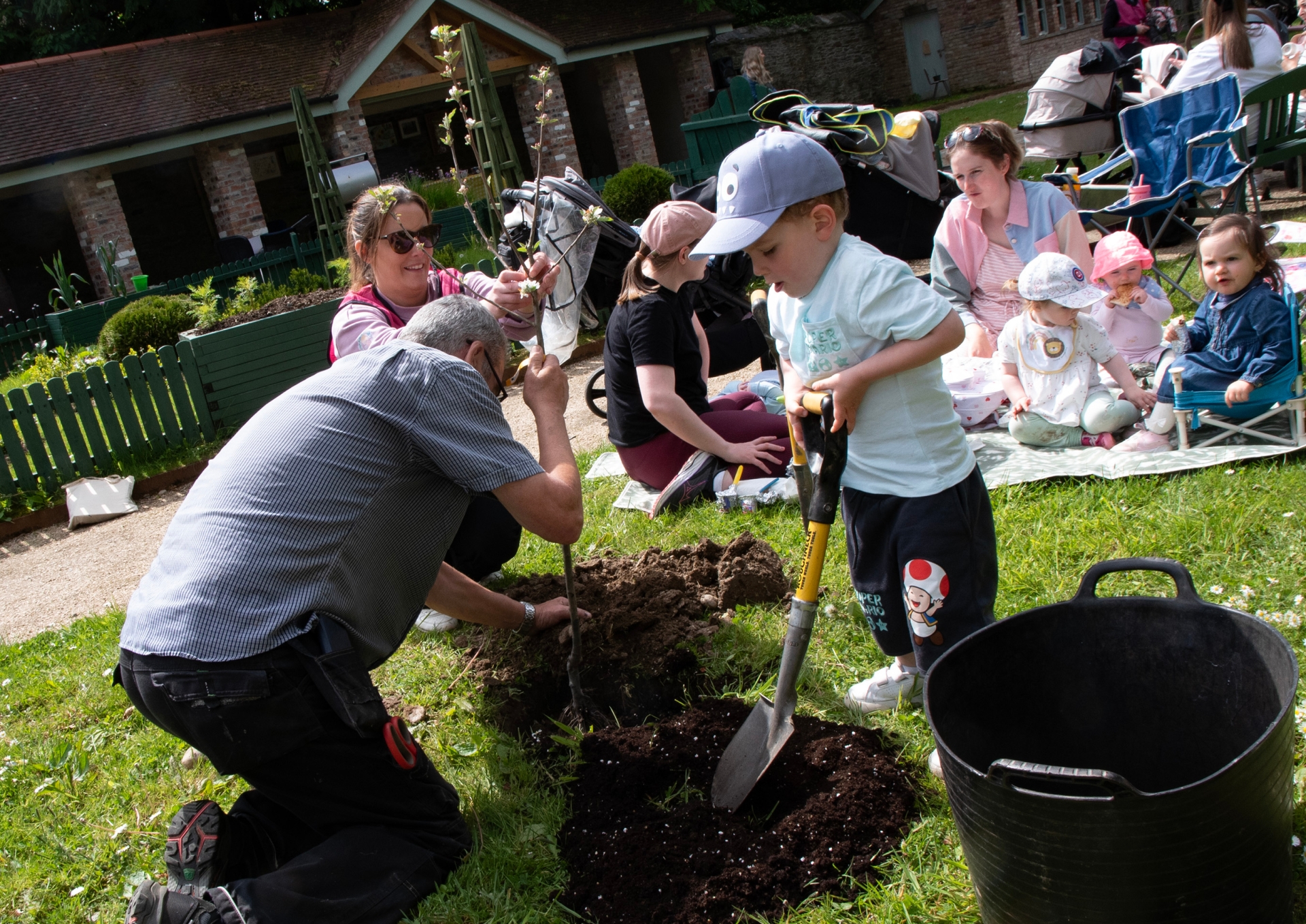 Minding Mum Project Manager Christine McBride and St Columb's Park House staff Liam Nelis planting the Minding Mum tree with Axel to mark World Maternal Mental Health Day.