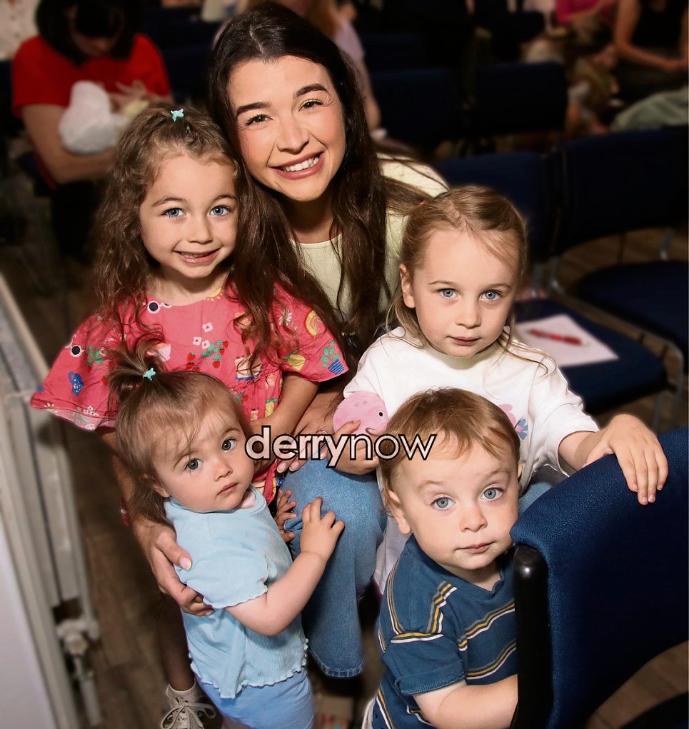 Sarah pictured with the kids Sofia, Alaia, Cait and Coan.