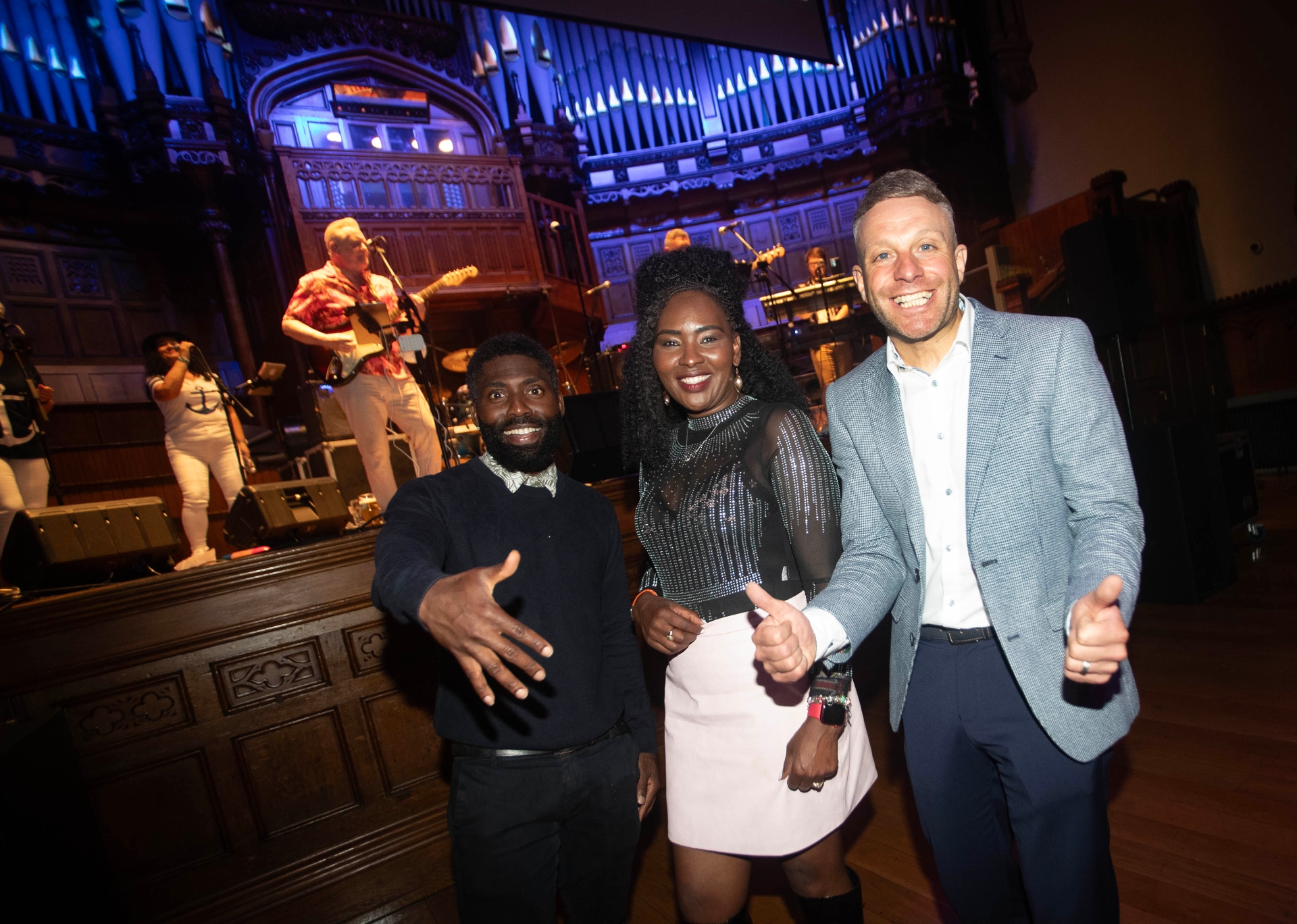 The Mayor, Lilian Seenoi-Barr pictured with guest performers at Saturday night's 'Derry Rocks For Bud Club' in the Guildhall, Derry. Included are Fabu-D Black Paddy, Ritchie Remo and at back, The Mindbenders.