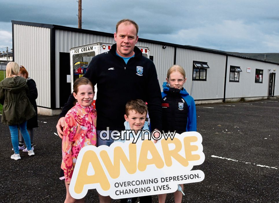 St Canice's GAC, Dungiven, Family Fun Evening, supporting Sean McGlinchey's 70th birthday half-marathon in memory of his sister Anne. Ciaran McQuillan, Mayor of Causeway Coast and Glens, is pictured with Sabrina and Brian Mullan, Colum McNicholl, Hugh Osbourne, Liam Tracey, Ciaran McKeever, Bridie Kelly and Mary O'Kane. (Photos - Kerrie Quinn, nwpresspics)