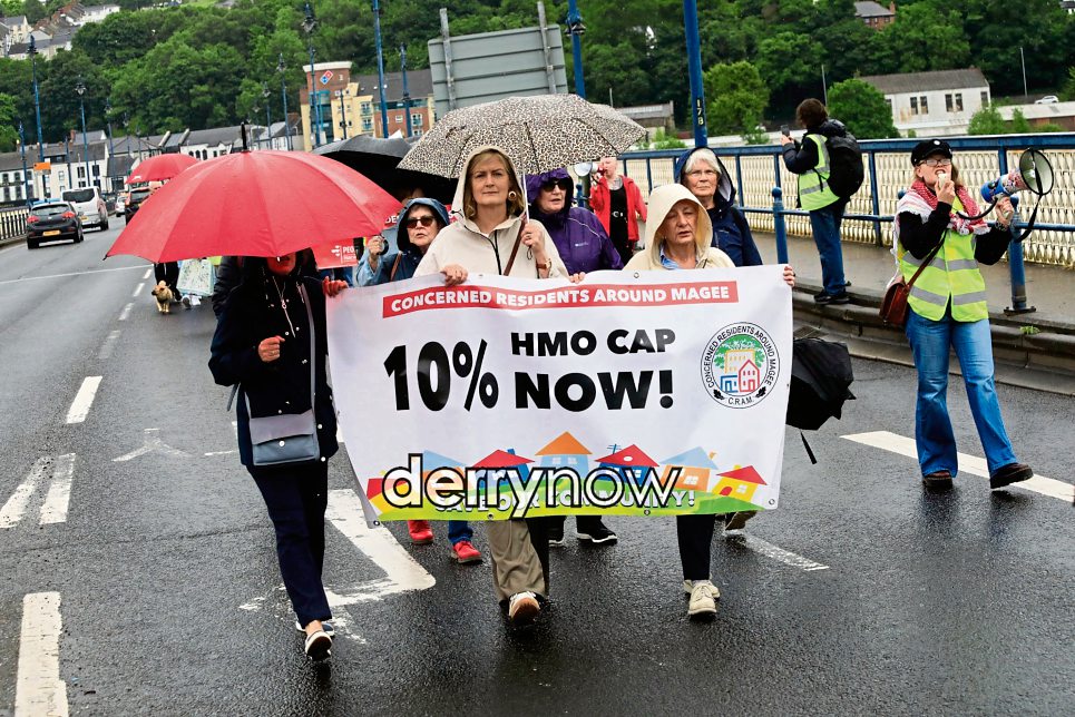 Protesters taking part in the Derry Housing Action Committee’ “Housing is a Right” march crossing Craigavon Bridge on Saturday. (Photos - Tom Heaney, nwpresspics)
