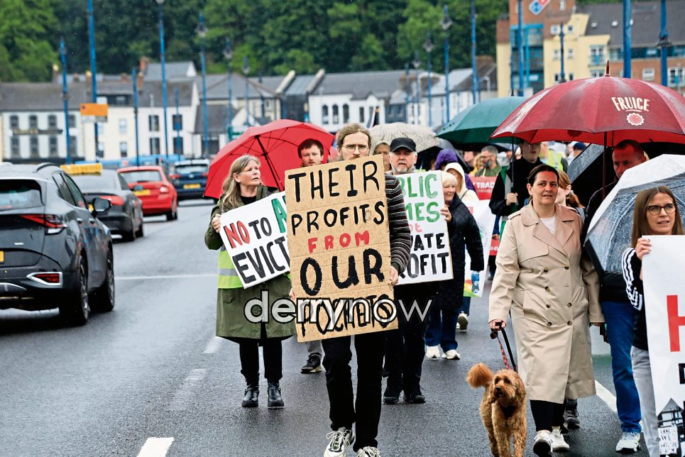 Protesters taking part in the Derry Housing Action Committee’ “Housing is a Right” march crossing Craigavon Bridge on Saturday. (Photos - Tom Heaney, nwpresspics)