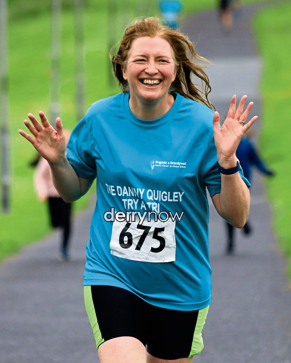 Joanne Doherty taking part in the Danny Quigley Fund Try A Try at Templemore Sports Complex, on Sunday morning. (Photos - Tom Heaney, nwpresspics)