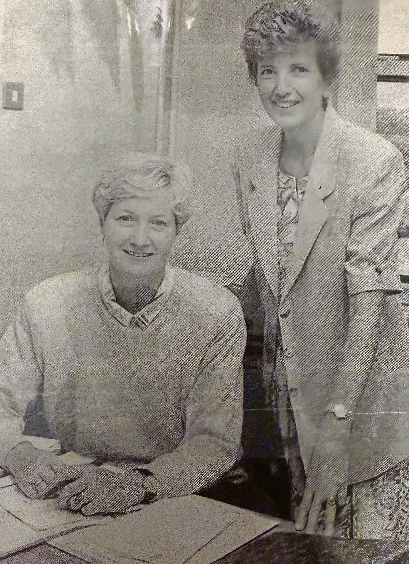 Mrs Audrey Logan (Principal of Cumber Claudy) pictured with Ms Nanette Eakin (Secretary) when the school opened in 1994.
