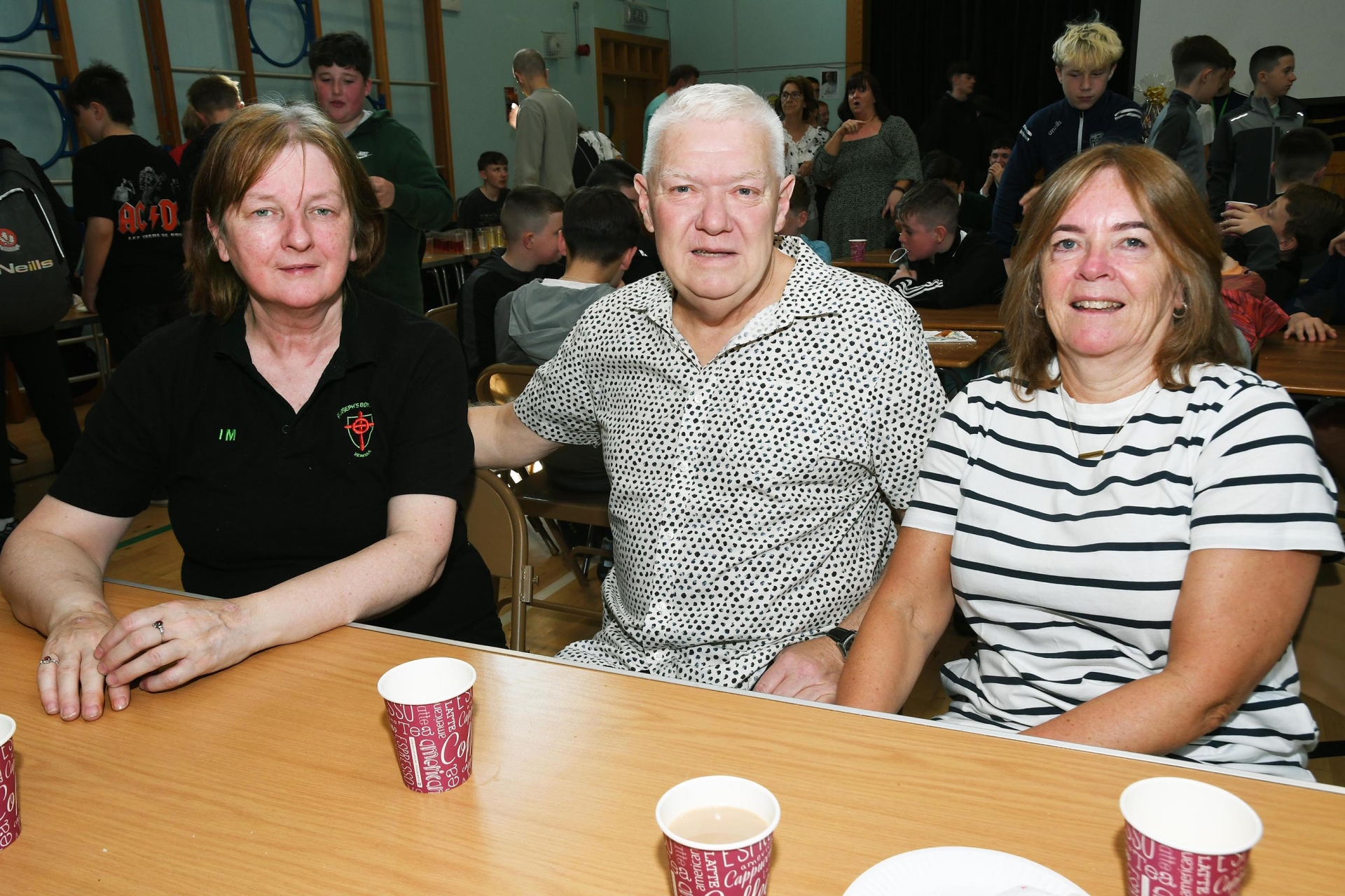 Irene Melaugh, Seamus O'Neill and Goretti O'Neill enjoyed Olive Branch For Gaza Coffee Morning held in St. Joseph's Boys' School.