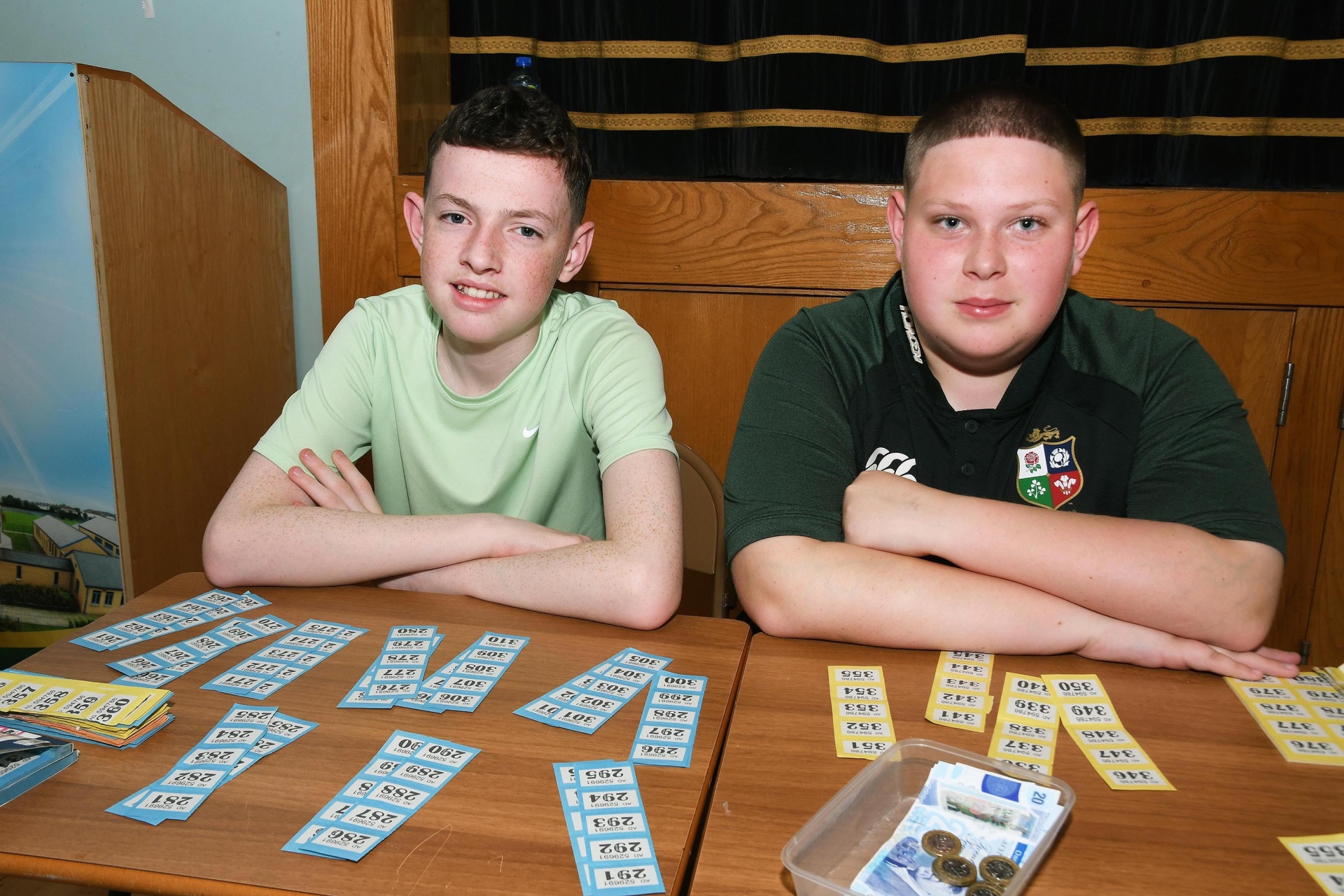 Oran Mullan and Caoimhin Nolan who sold raffle tickets at the Olive Branch For Gaza Coffee Morning held in St. Joseph's Boys' School.