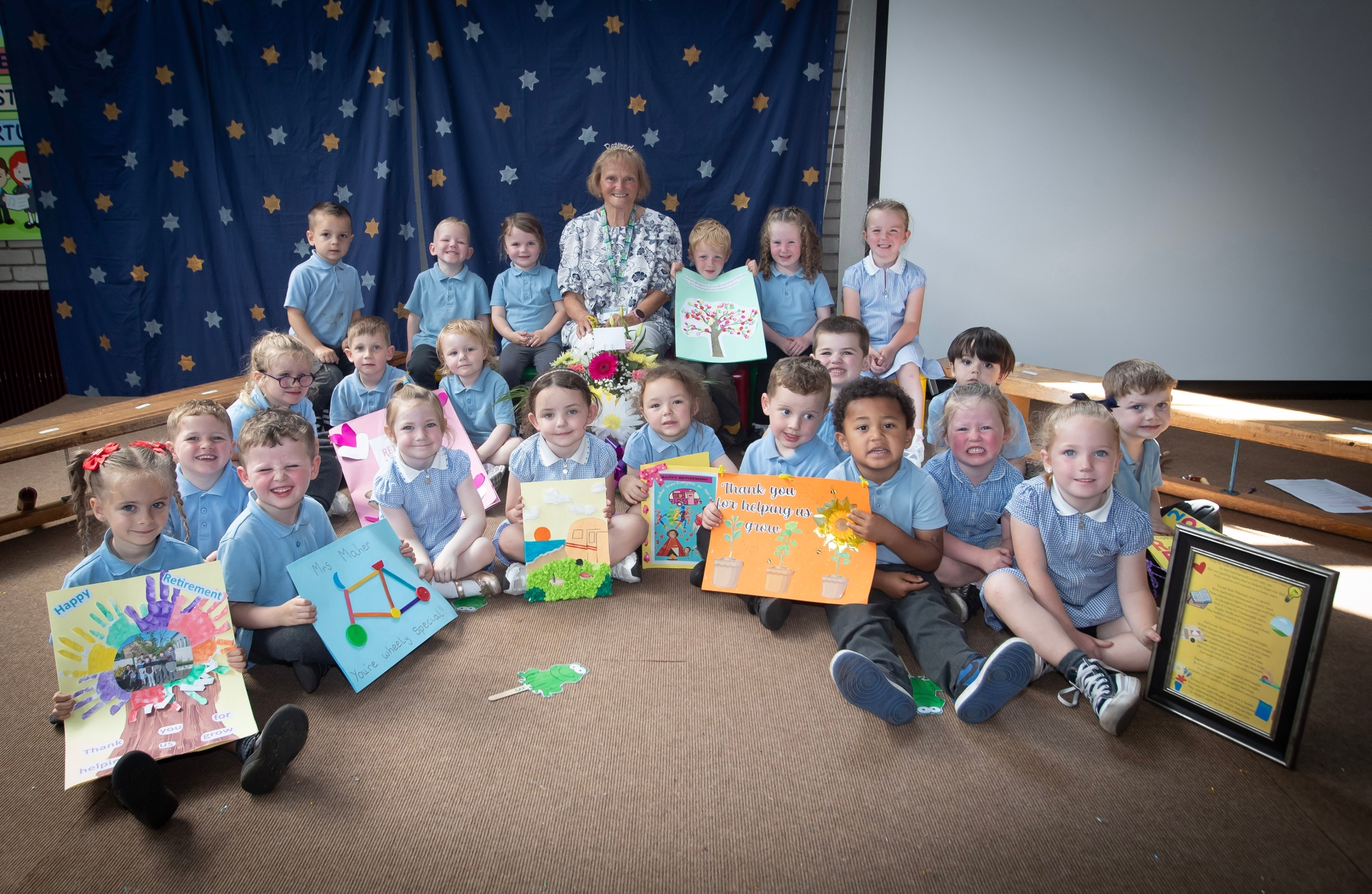 Mrs. Maher pictured with some of the St. Brigid's PS Nursery pupils at her retirement. (Photos: Jim McCafferty Photography)